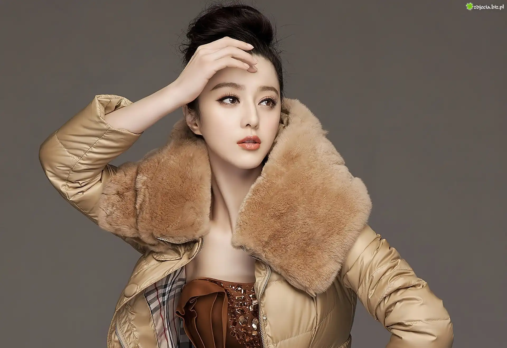 Zdjęcie Brunetka, Makijaż, Zimowa, Kurtka