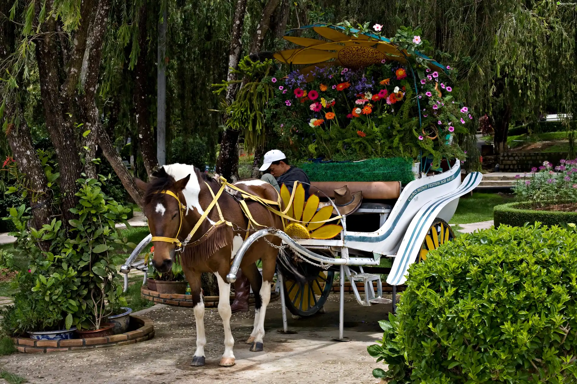 Zdjęcie, Koń, Bryczka, Ogród