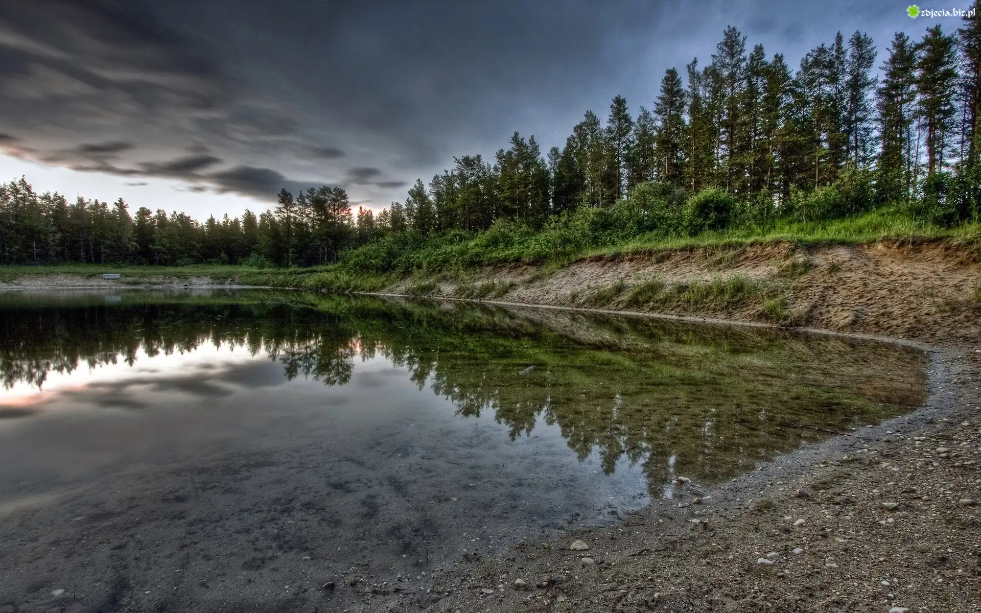 Zdjęcie, Jezioro, Brzeg, Drzewa