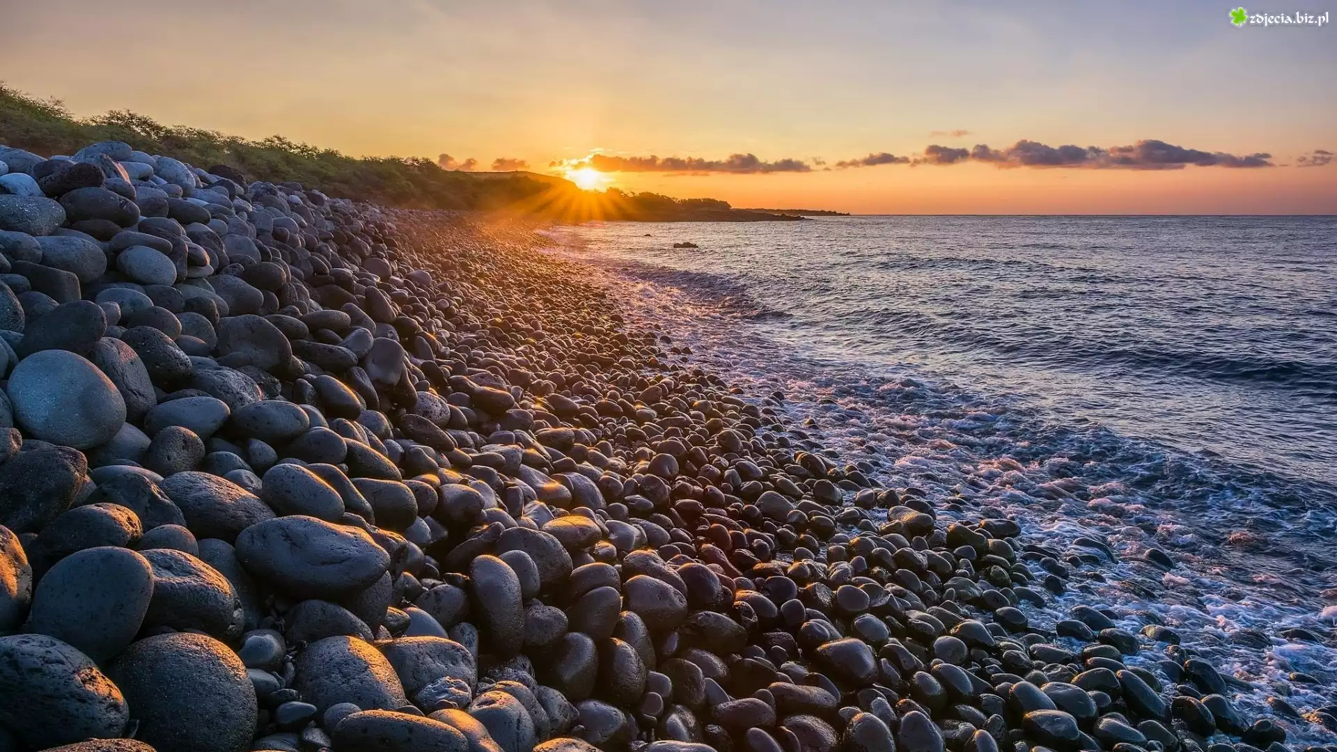 Zdjęcie Brzeg, Morze, Kamienie, Zachód słońca