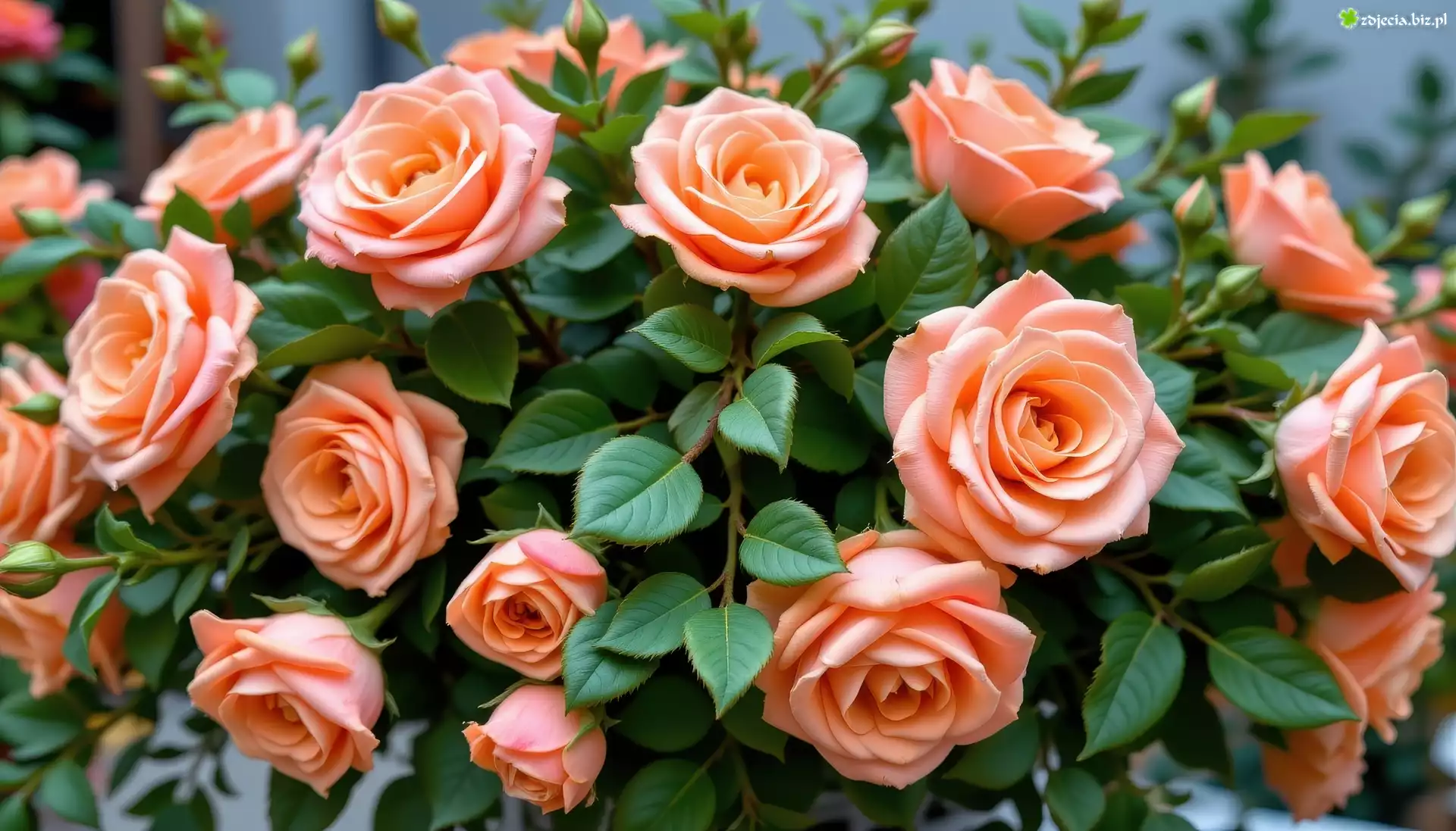 Zdjęcie Brzoskwiniowe, Róże, Listki