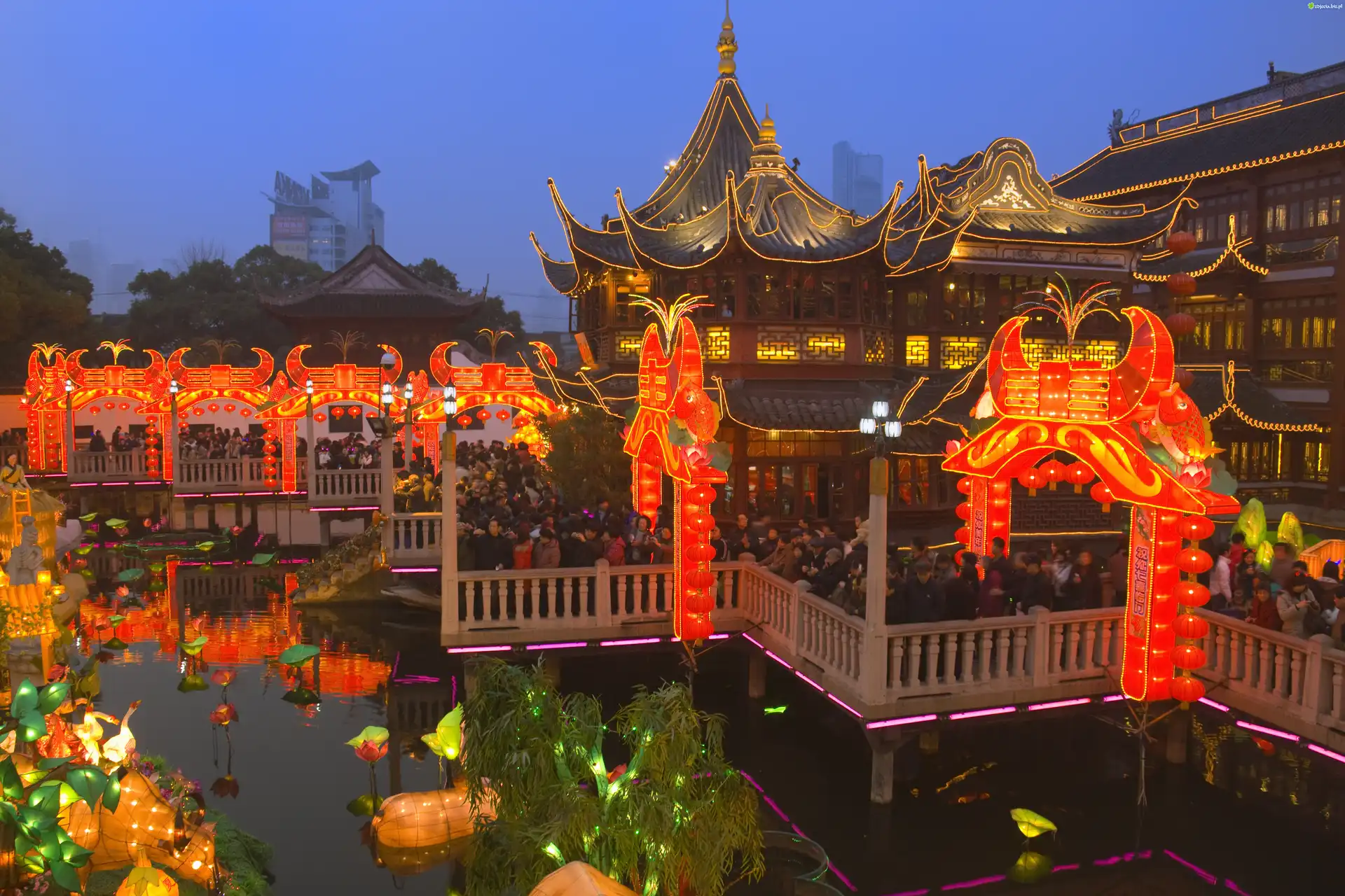 Zdjęcie Budynek, Staw, Oświetlenia, Szanghai, Chiny