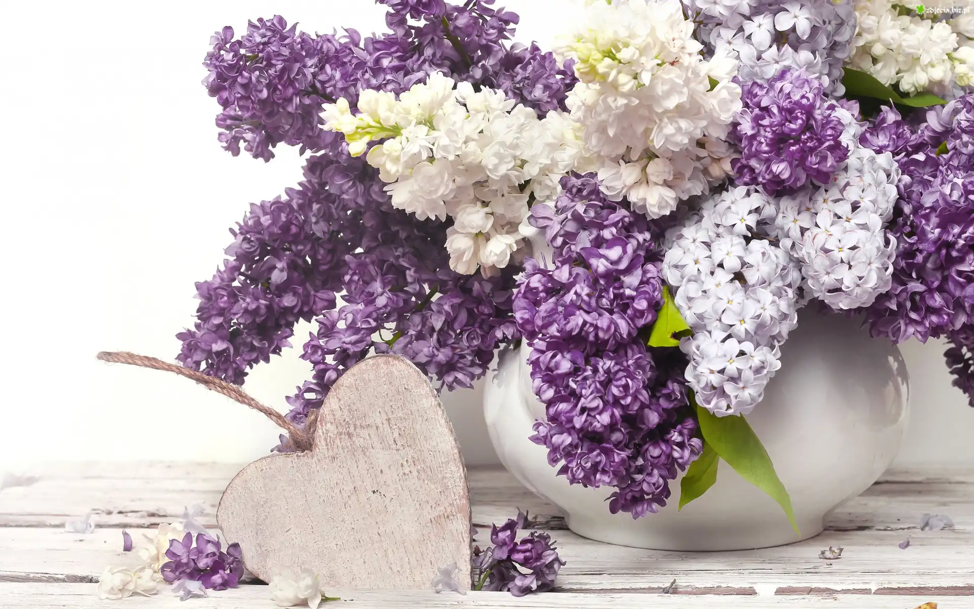Zdjęcie Bukiet, Bez, Liliowy, Biały, Serduszko