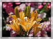 Zdjęcie Bukiet, Lilie, Margerytki, Wazon, Morele, Kompozycja