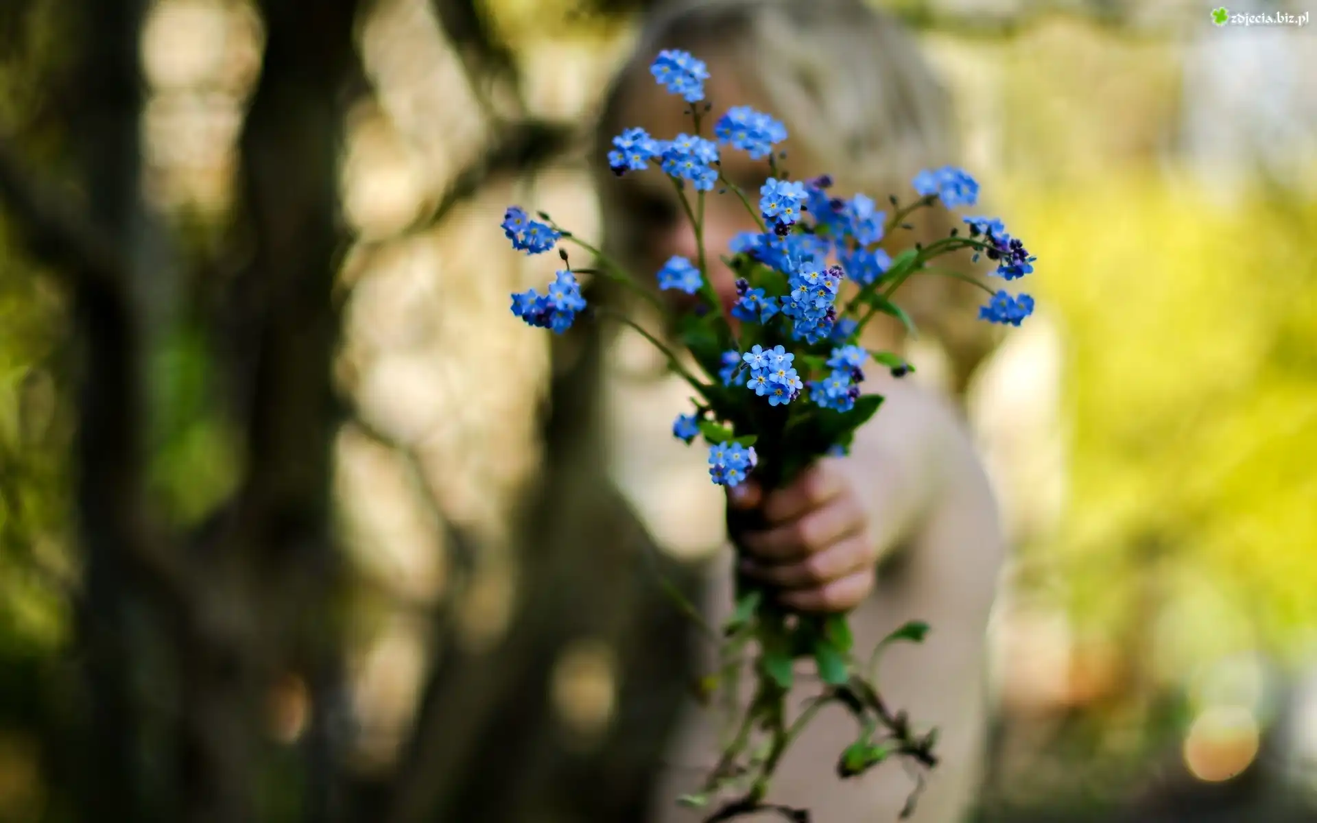 Zdjęcie Bukiet, Kwiatów, Niezapominajki, Ręka