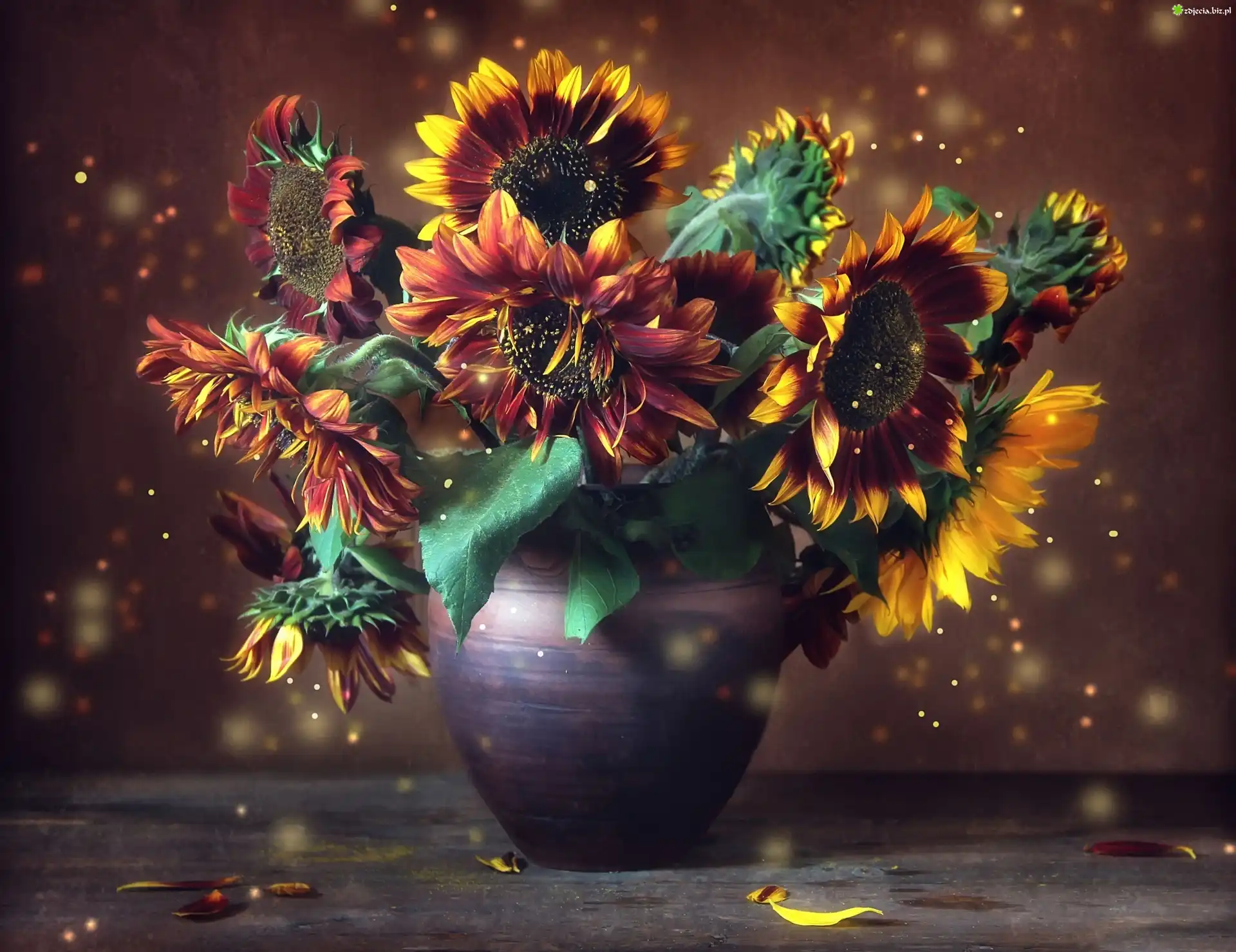 Zdjęcie Słoneczniki, Bukiet, Wazon
