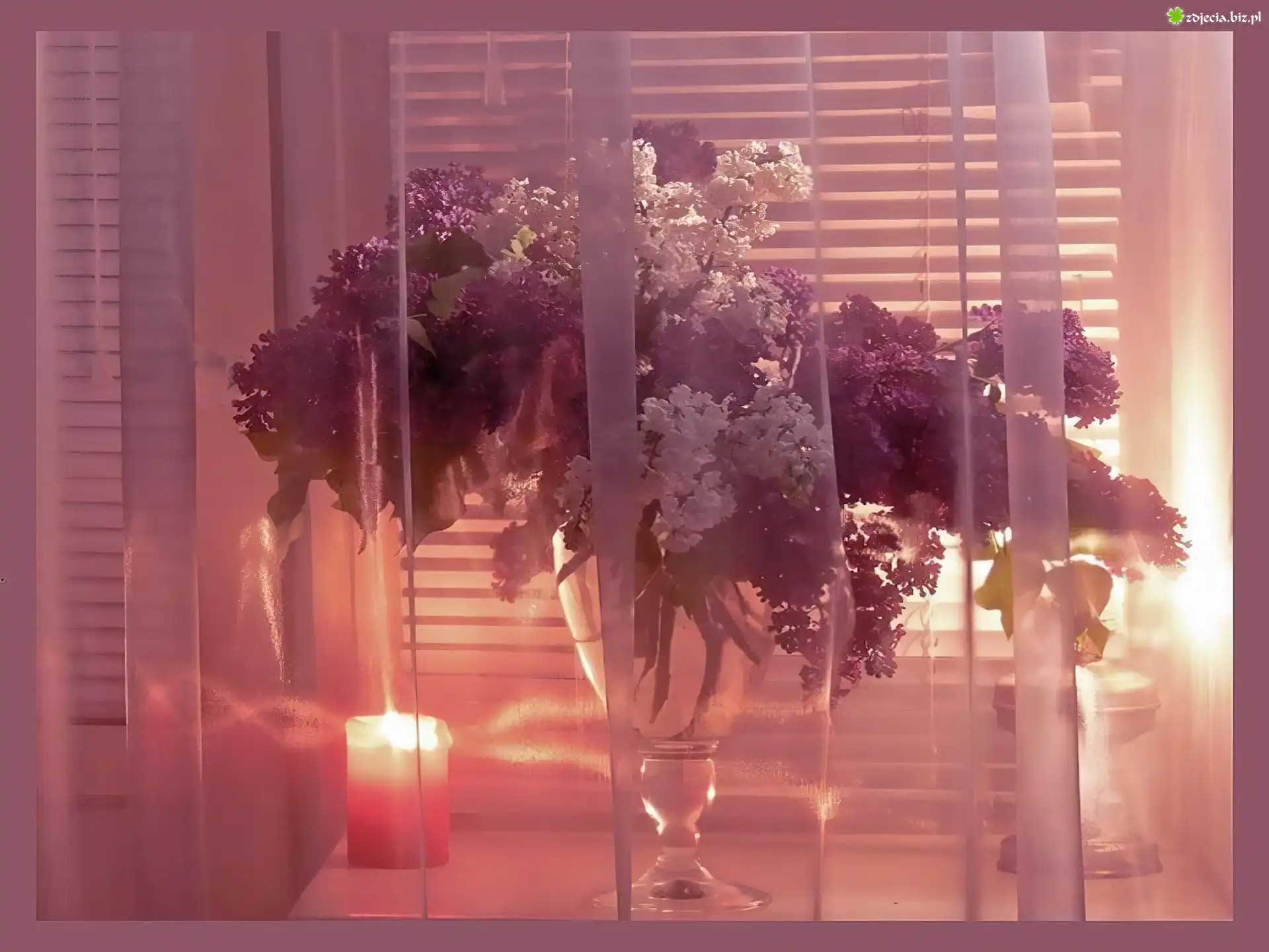 Zdjęcie Bukiet, Kwiatów, Wazon, Firanki