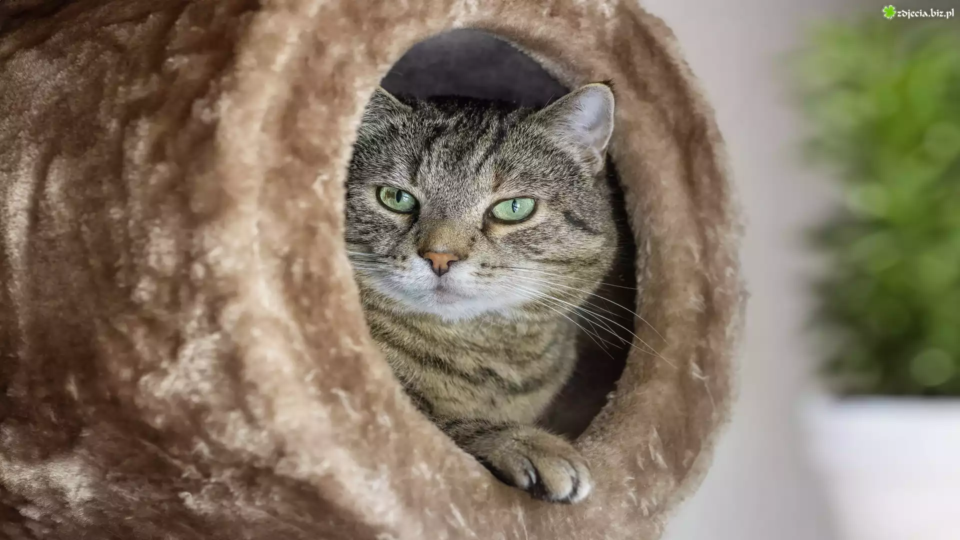 Zdjęcie Szaro-bury, Kot, Spojrzenie, Legowisko