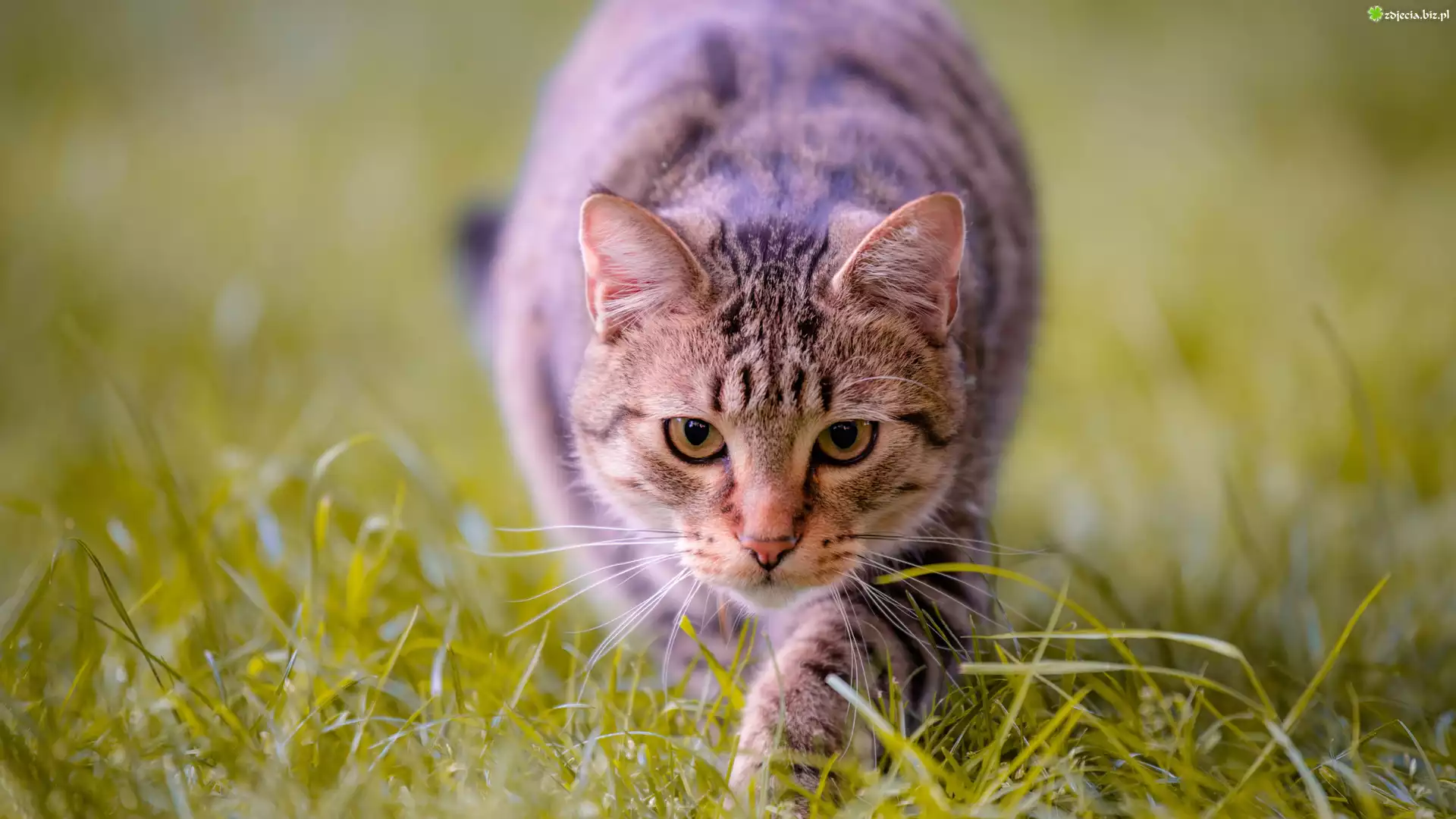 Zdjęcie Bury, Kot, Zielona, Trawa