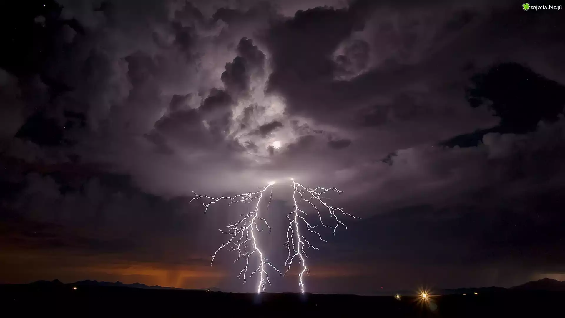 Zdjęcie Burza, Pioruny, Chmury, Noc