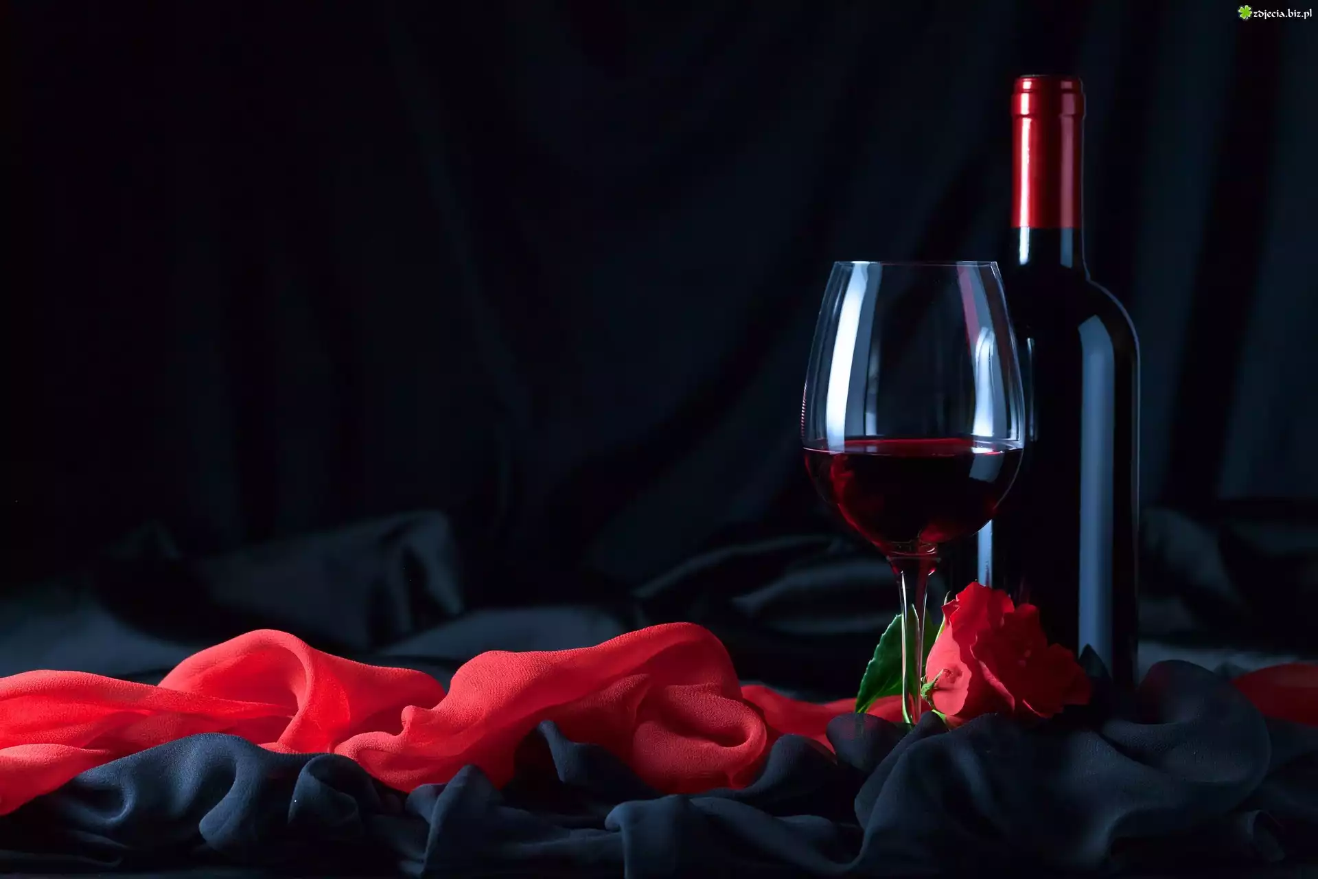 Zdjęcie Butelka, Wino, Kieliszek, Czerwona, Róża