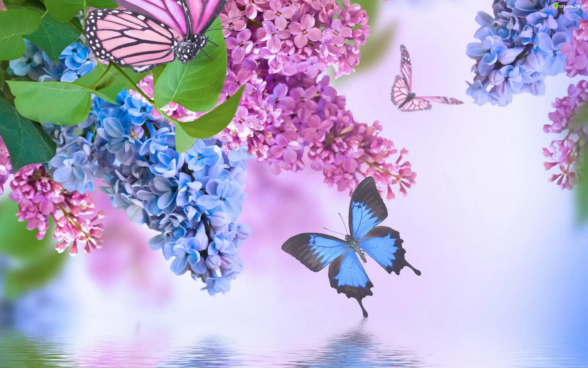 Zdjęcie Bzy, Motylki, Woda, Grafika 2D