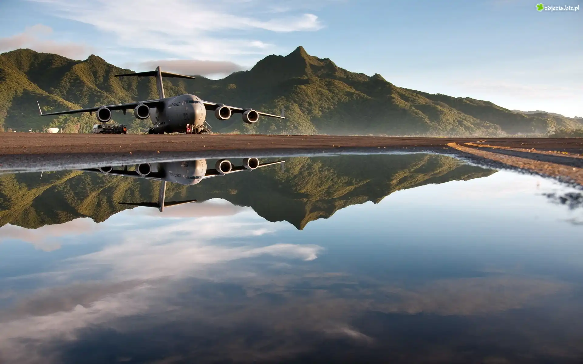 Zdjęcie, Boeing, C-17, Globemaster III, Góry, Woda, Odbicie