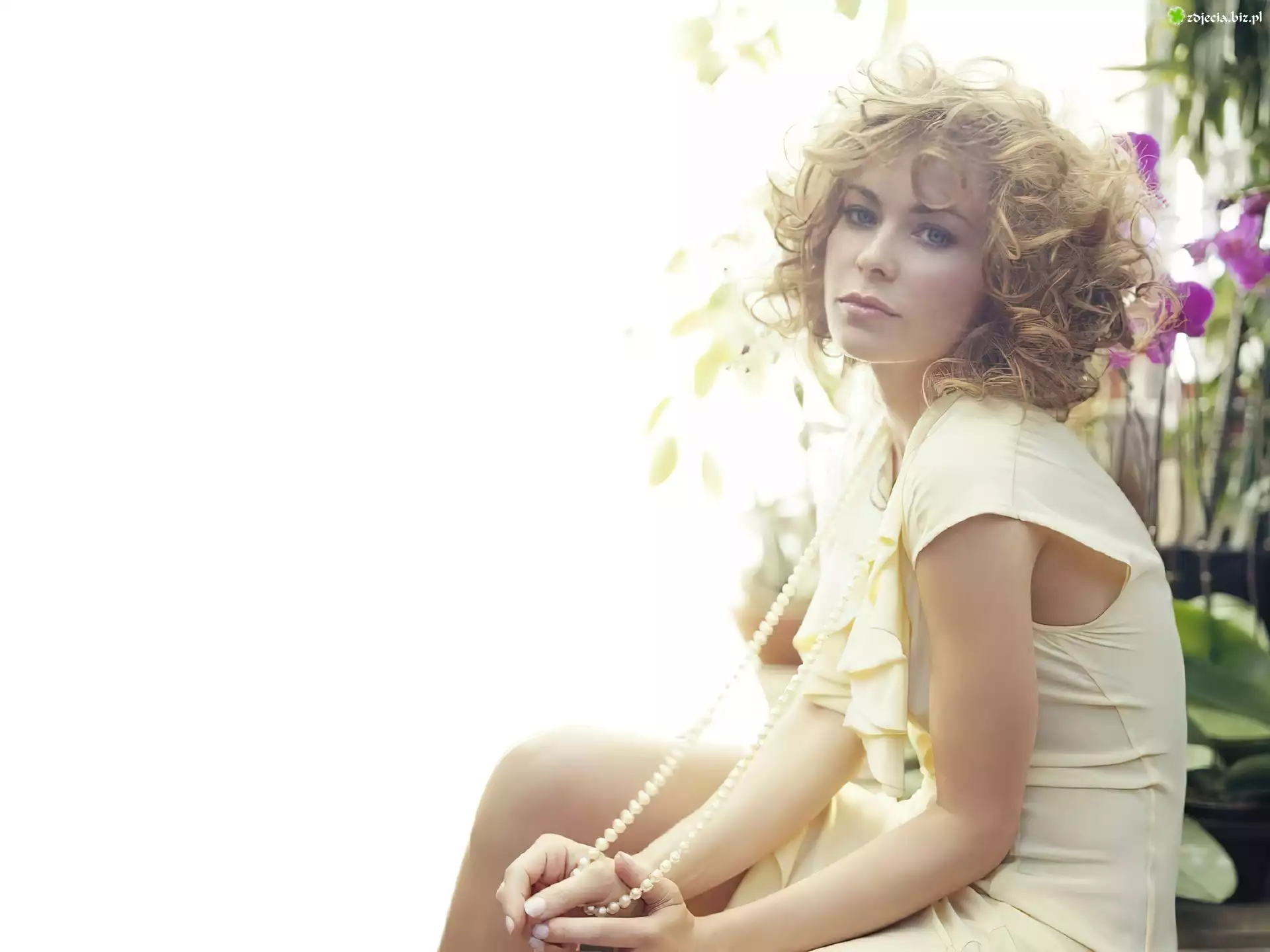 Zdjęcie, Carmen Electra, kręcone włosy, perły