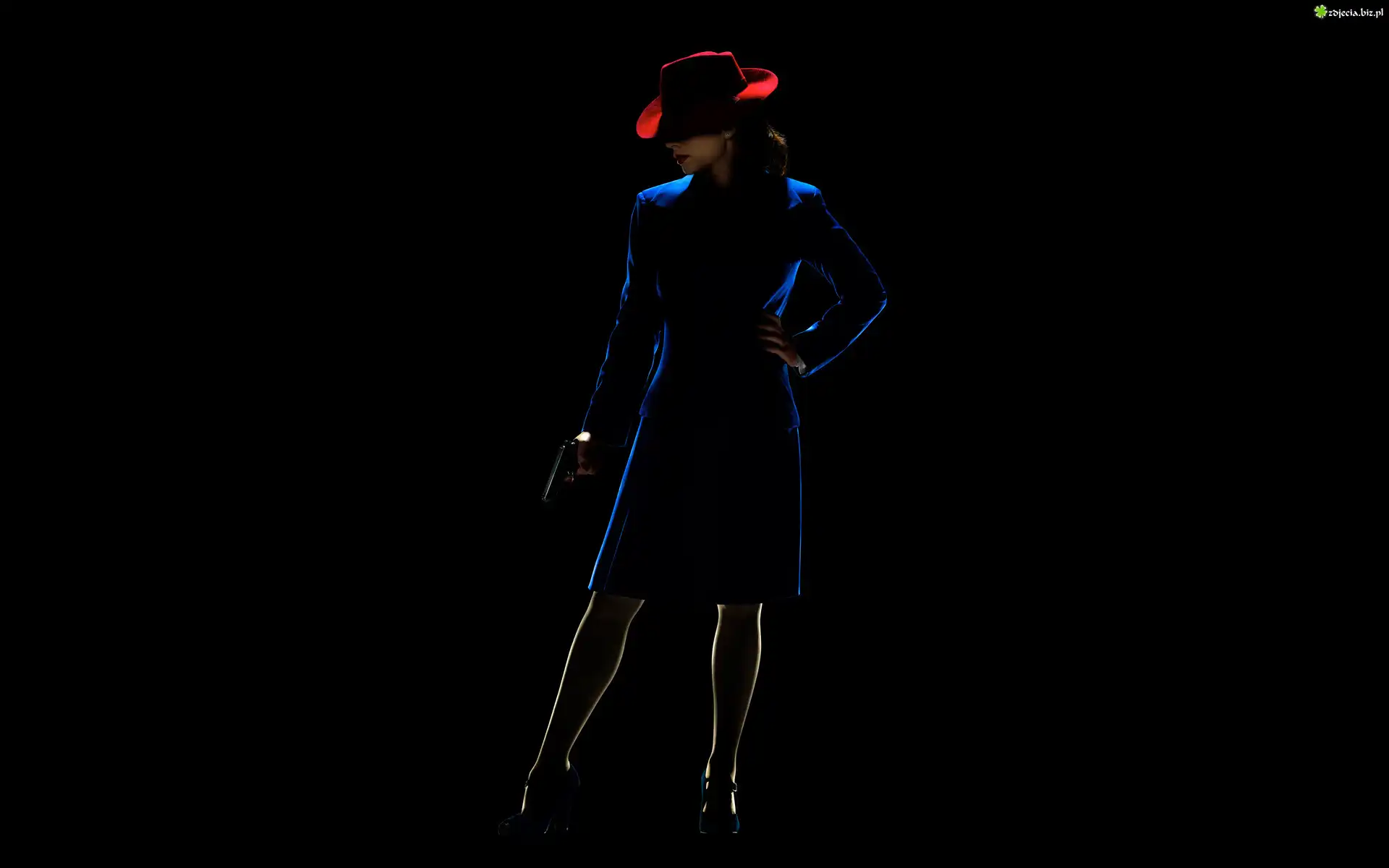Zdjęcie Kobieta, Hayley Atwell, Czerwony, Kapelusz, Pistolet, Serial, Agentka Carter
