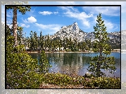 Zdjęcie Jezioro, Cathedral Lake, Park Narodowy Yosemite, Góry, Szczyt, Cathedral Peak, Drzewa, Kalifornia, Stany Zjednoczone |