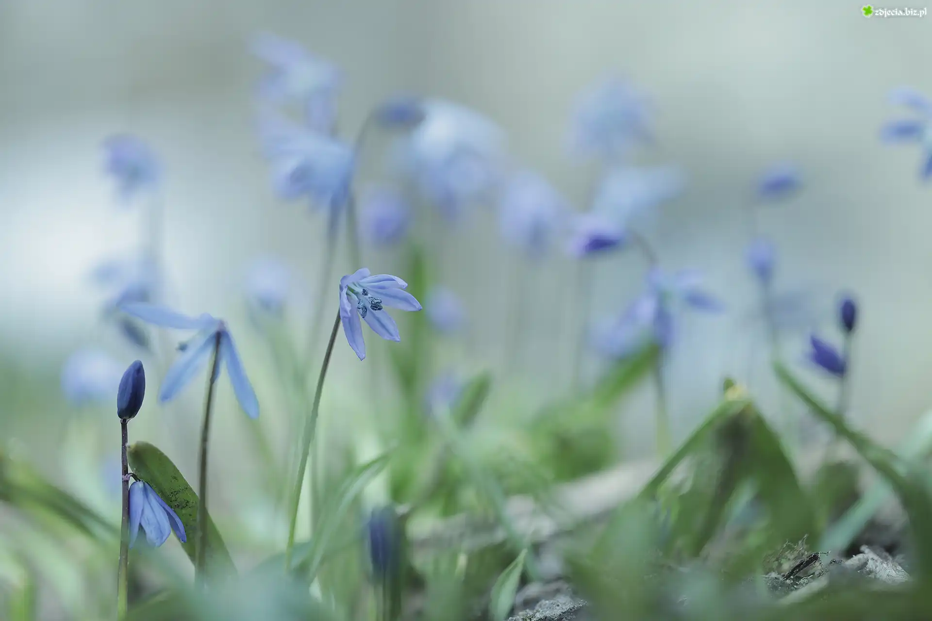 Zdjęcie, Cebulice syberyjskie, Niebieskie, Kwiaty, Rozmyte, Tło