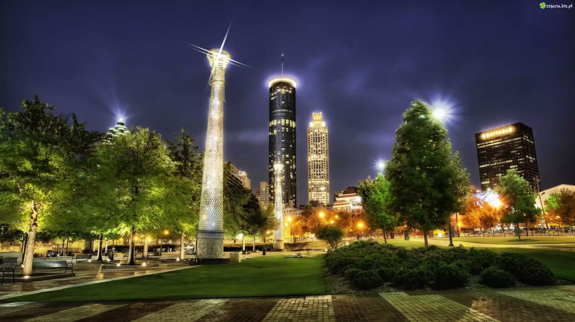 Zdjęcie, Central Park, Noc, Światła