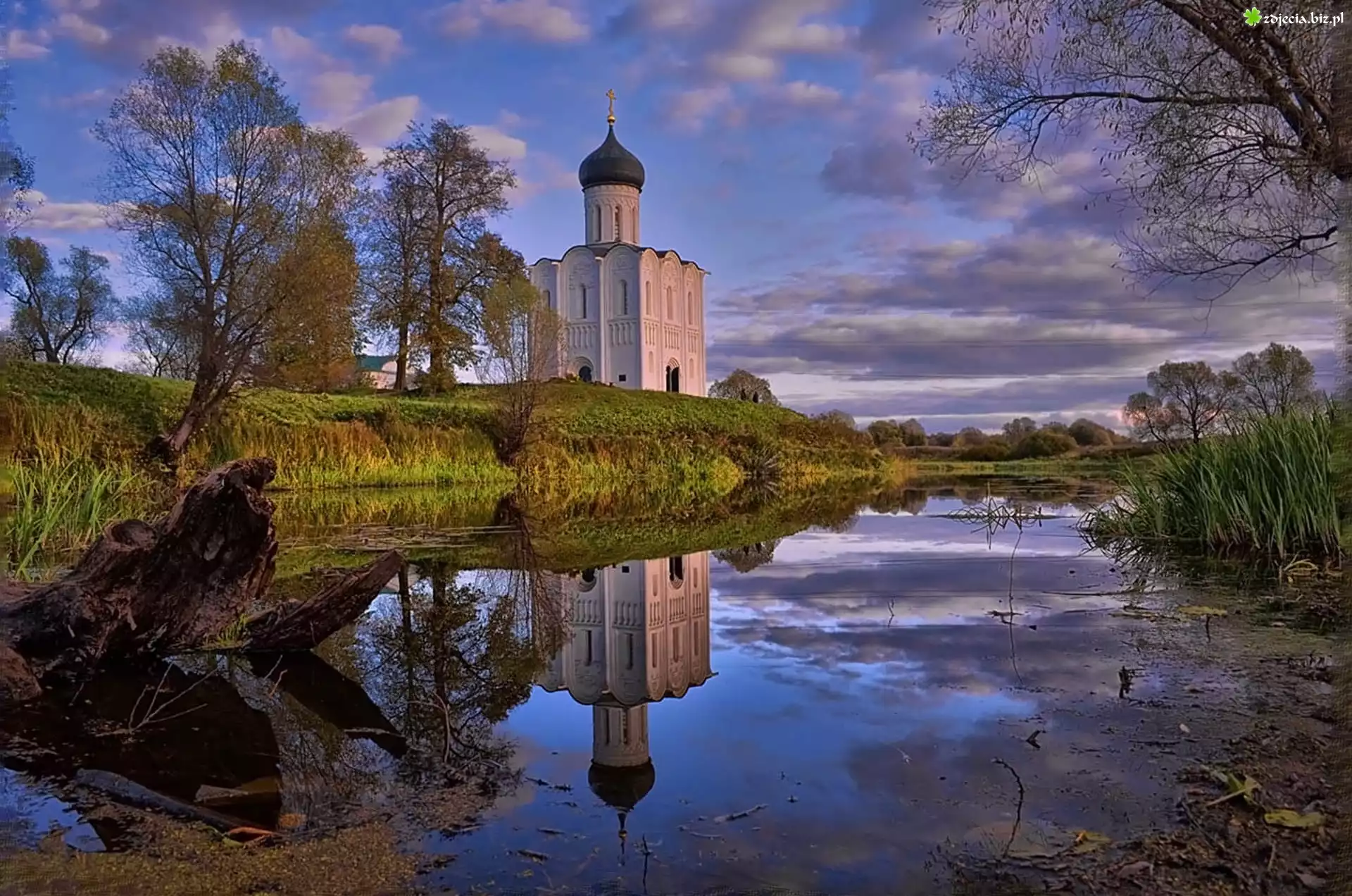 Zdjęcie Cerkiew, Rzeka, Chmury, Drzewa