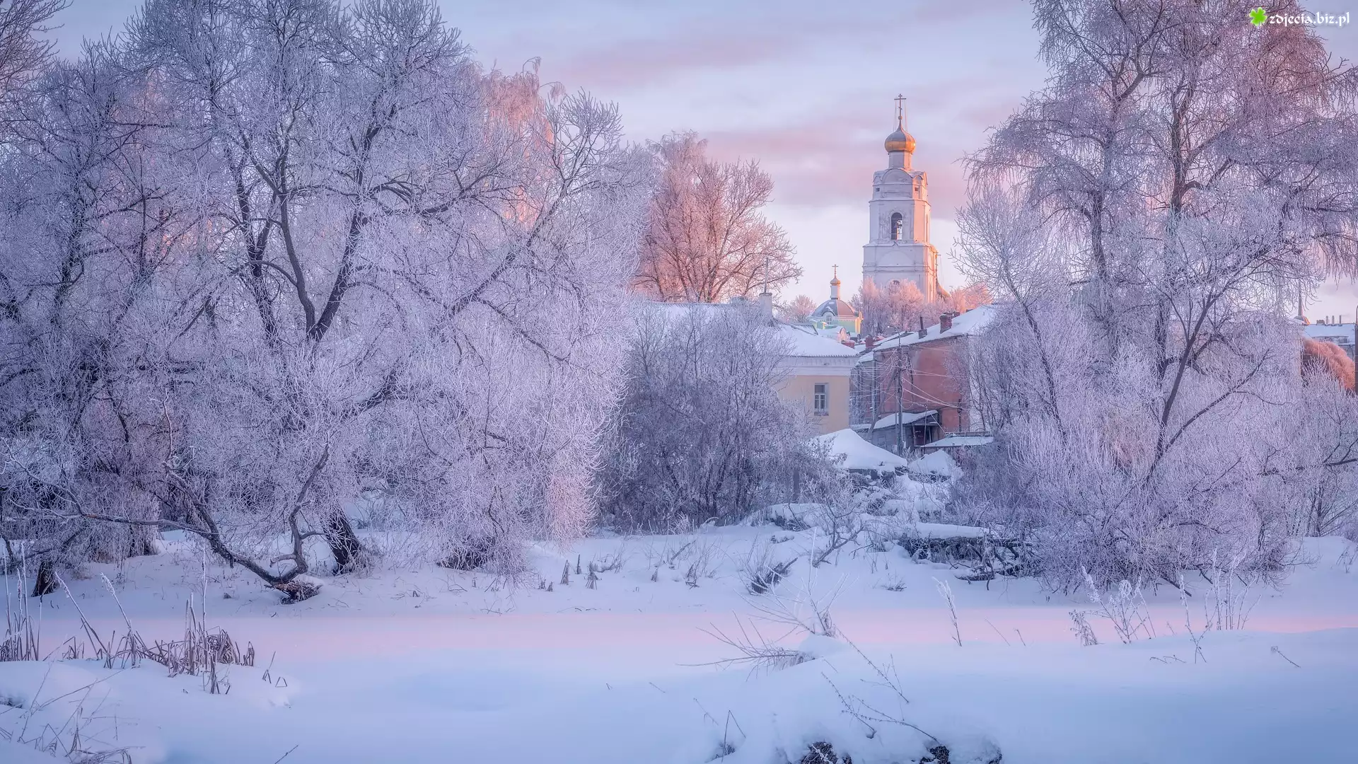 Zdjęcie Zima, Cerkiew, Ośnieżone, Drzewa, Wiaźma, Obwód smoleński, Rosja