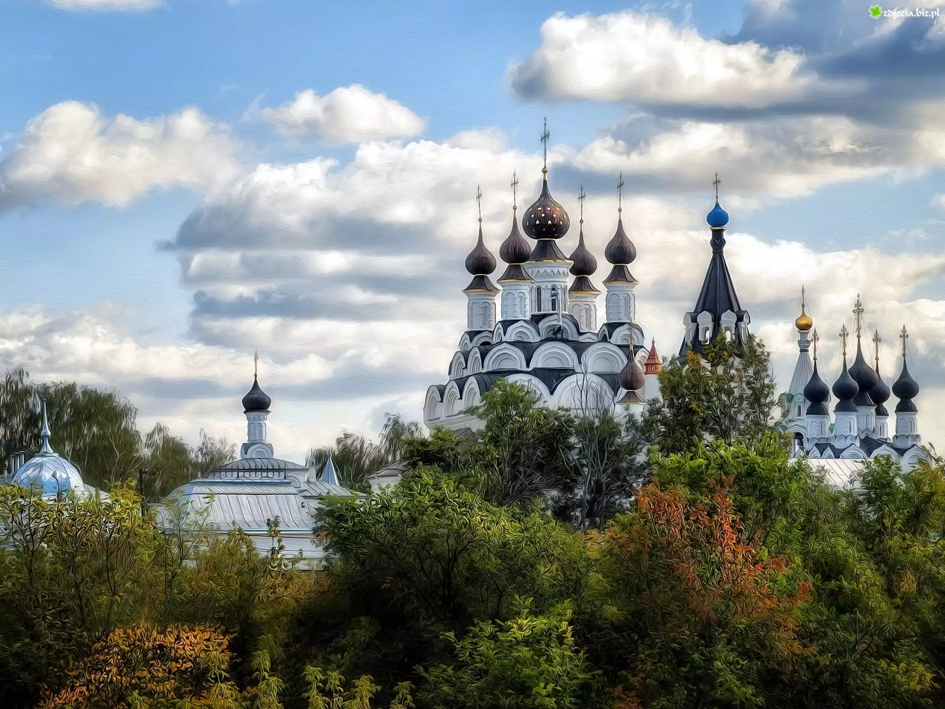 Zdjęcie Cerkiew, Chmury, Zieleń, Art