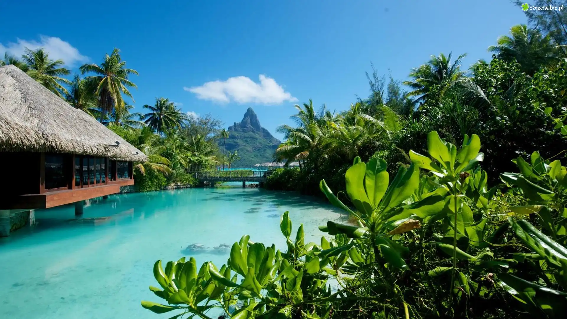 Zdjęcie, Chatka, Góra, Roślinność, Bora Bora
