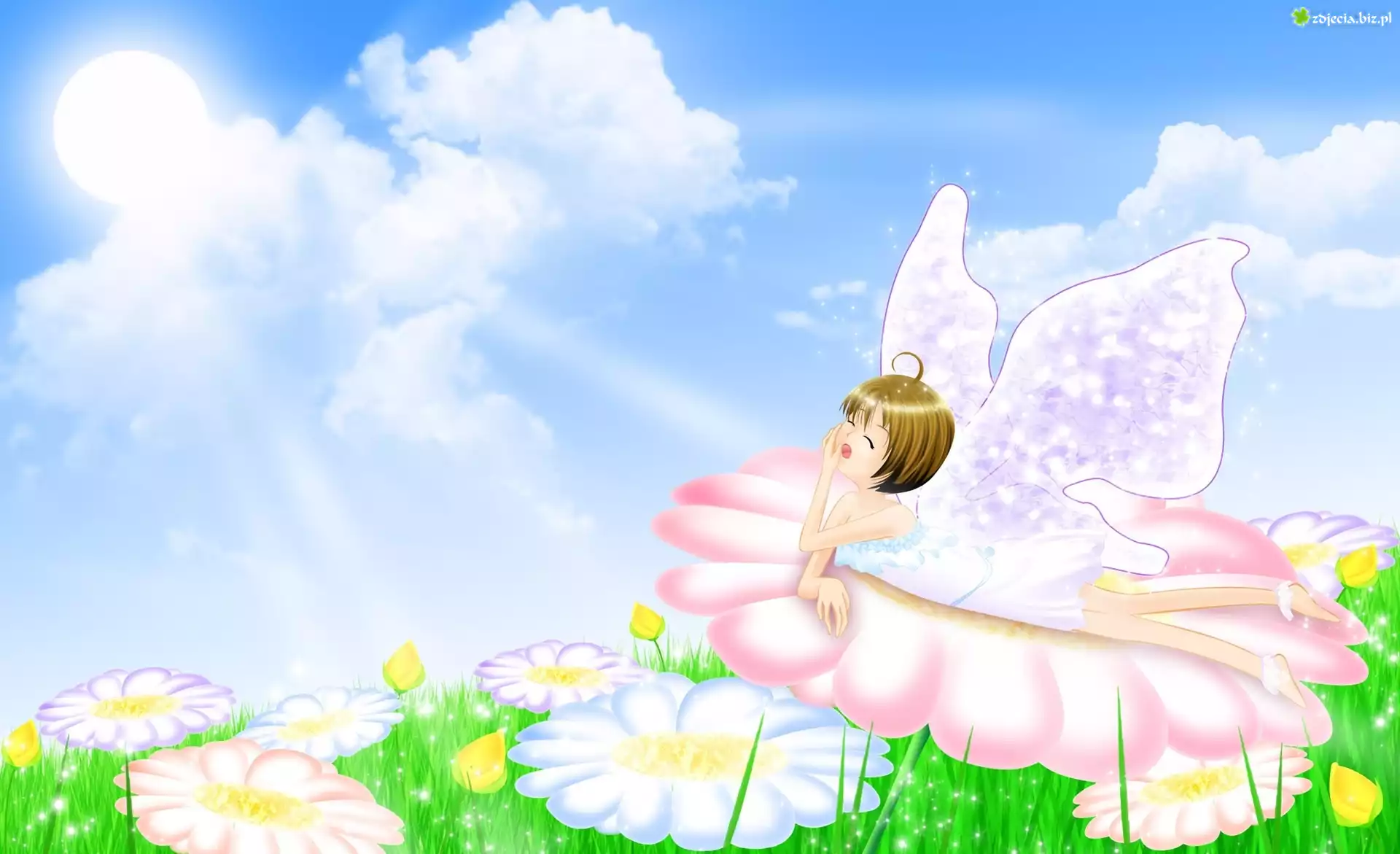 Zdjęcie Chibionpu, Wróżka, Białe, Kwiaty, Słońce