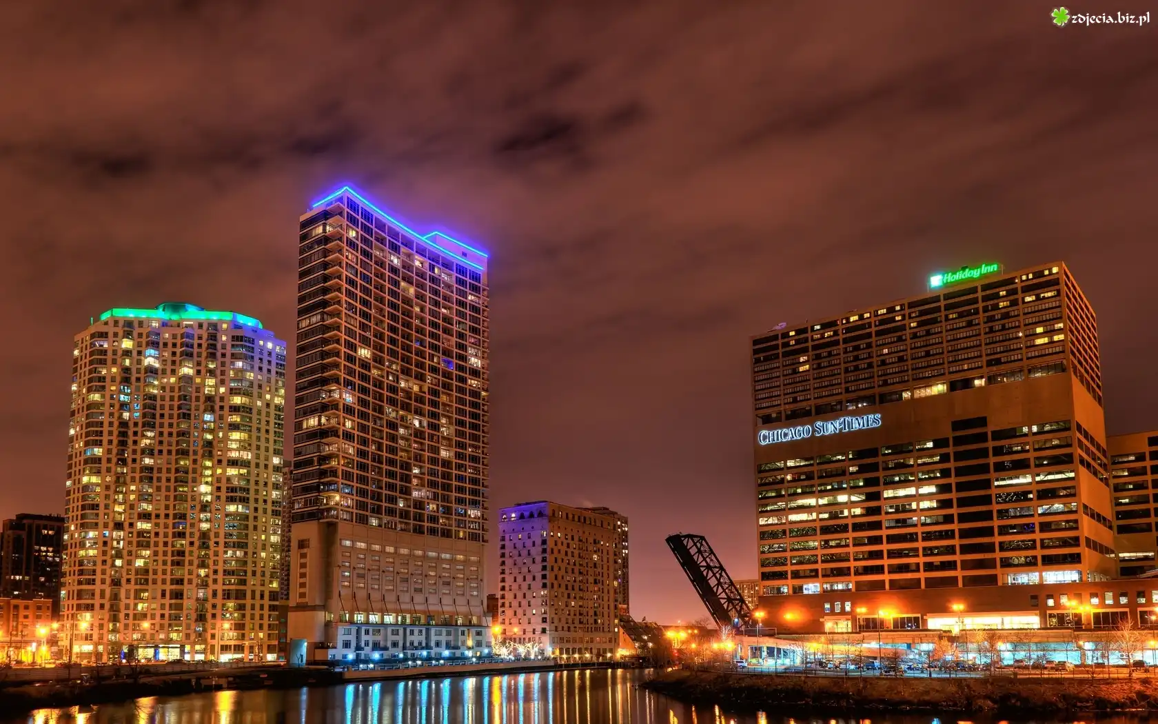 Zdjęcie Chicago, Wieżowce, Noc, Światła