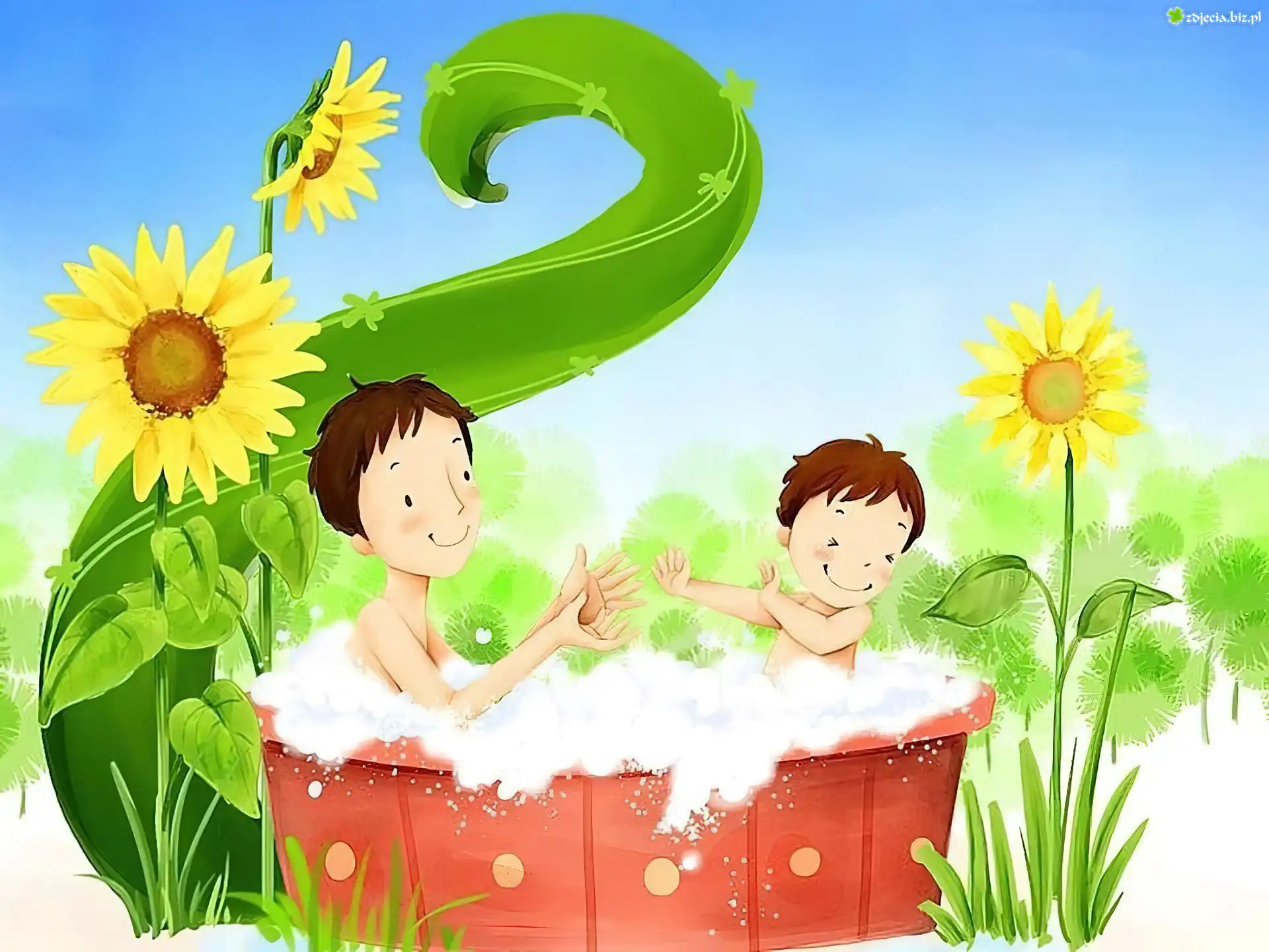 Zdjęcie Chłopcy, Wanna, Kąpiel, Słoneczniki