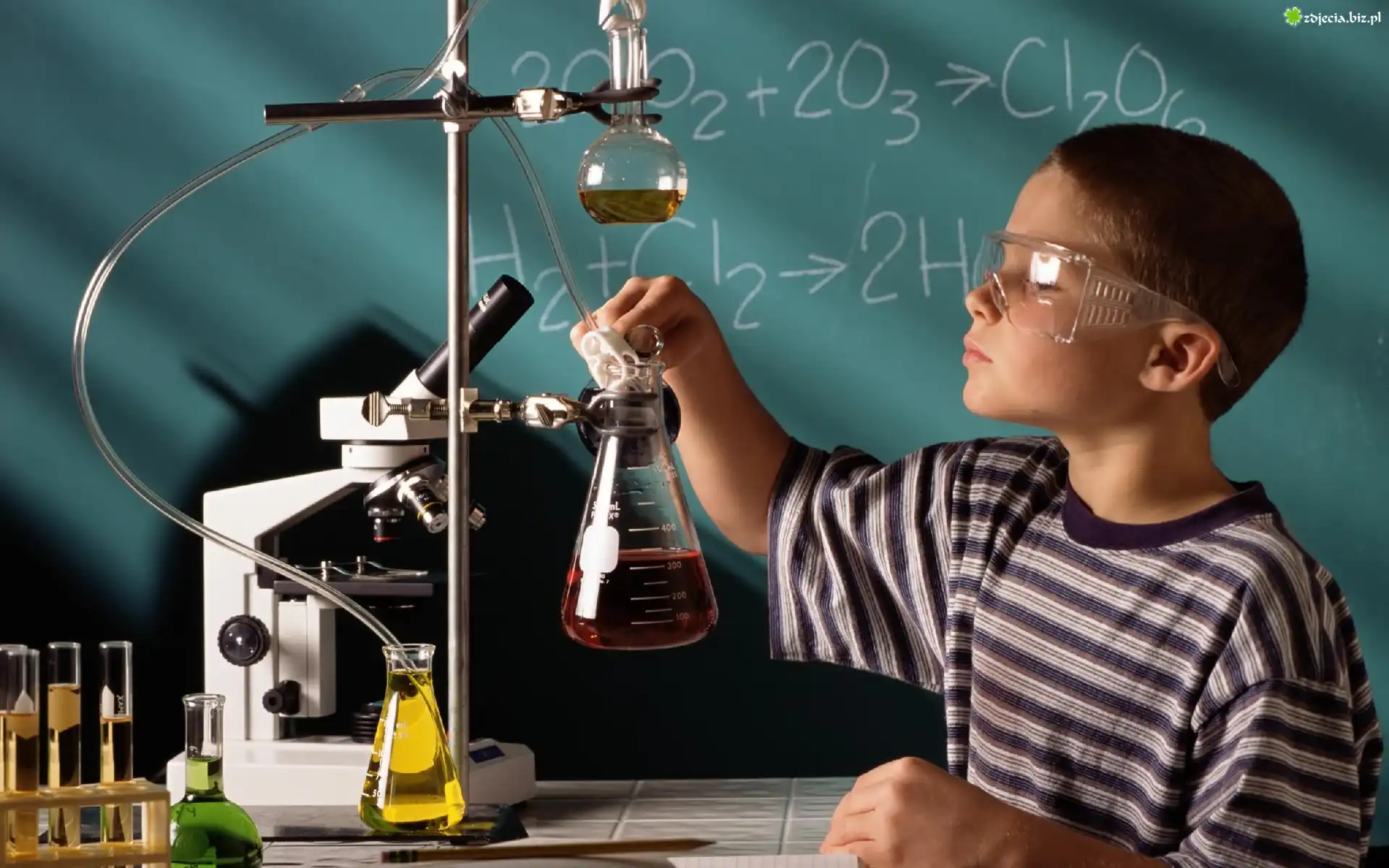 Zdjęcie Chłopiec, Chemia, Doświadczenia, Tablica