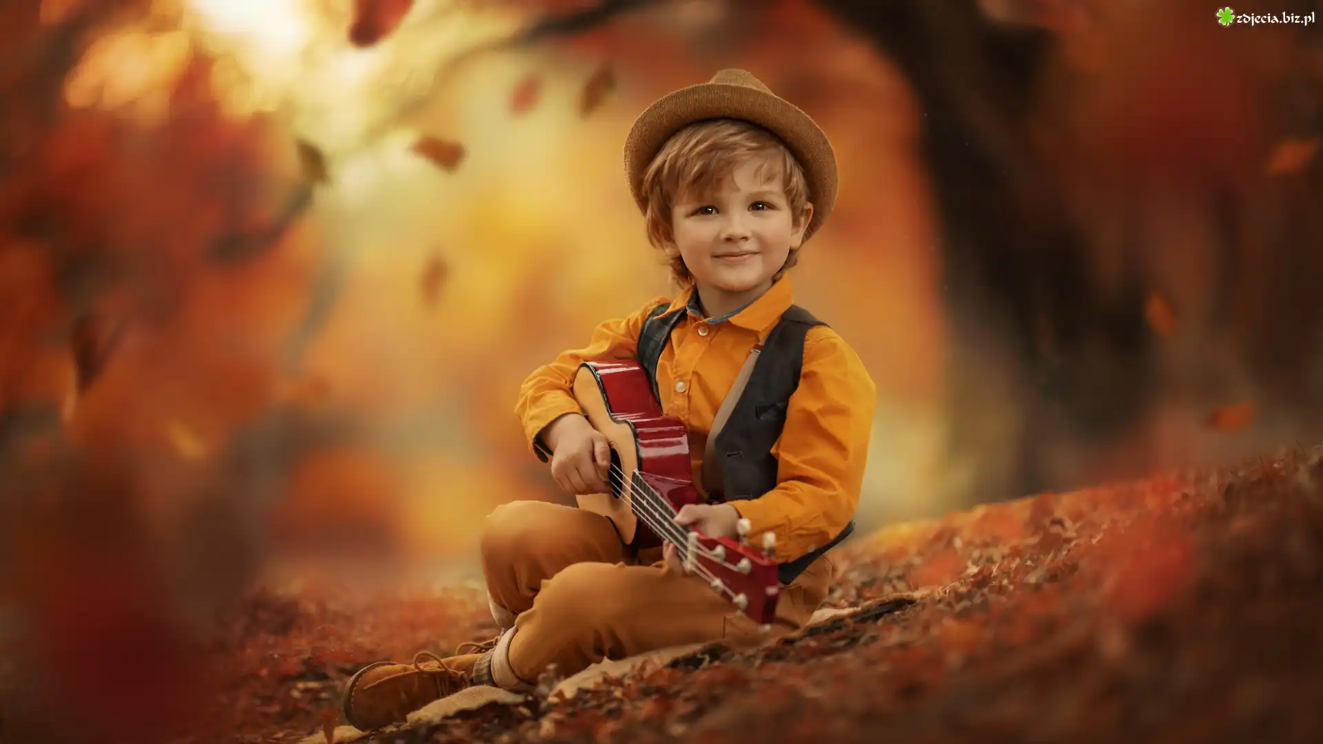 Zdjęcie Gitara, Chłopiec, Kapelusz