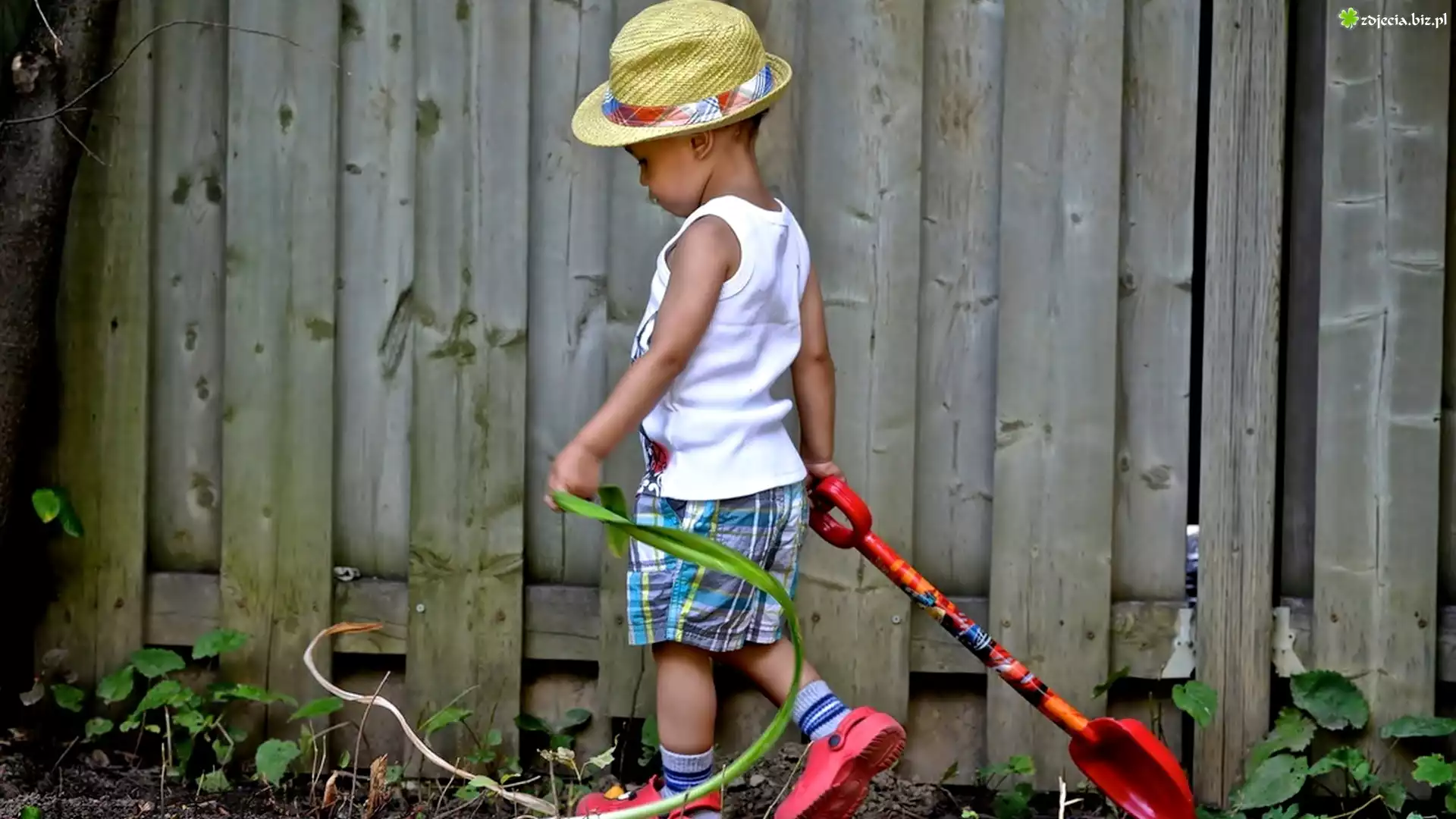Zdjęcie Chłopiec, Kapelusz, Łopatka, Płot
