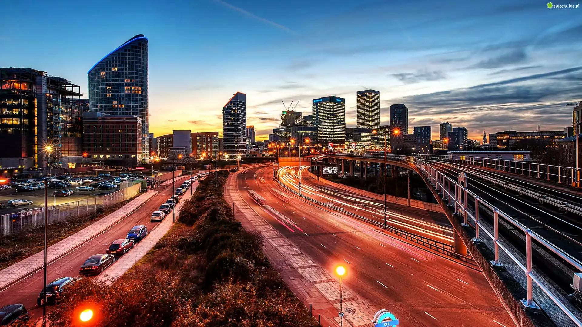 Zdjęcie, Drapacze Chmur, Arterie, Świt, Panorama, Londyn nocą