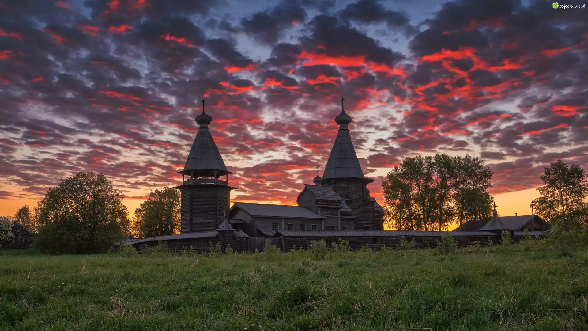 Zdjęcie Cerkiew, Pole, Niebo, Chmury