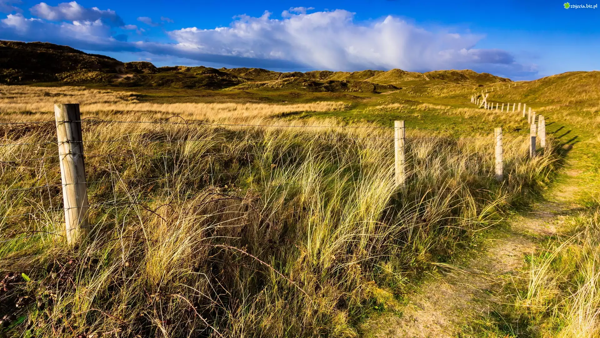 Zdjęcie Chmury, Wzgórza, Pastwiska, Droga, Ogrodzenie