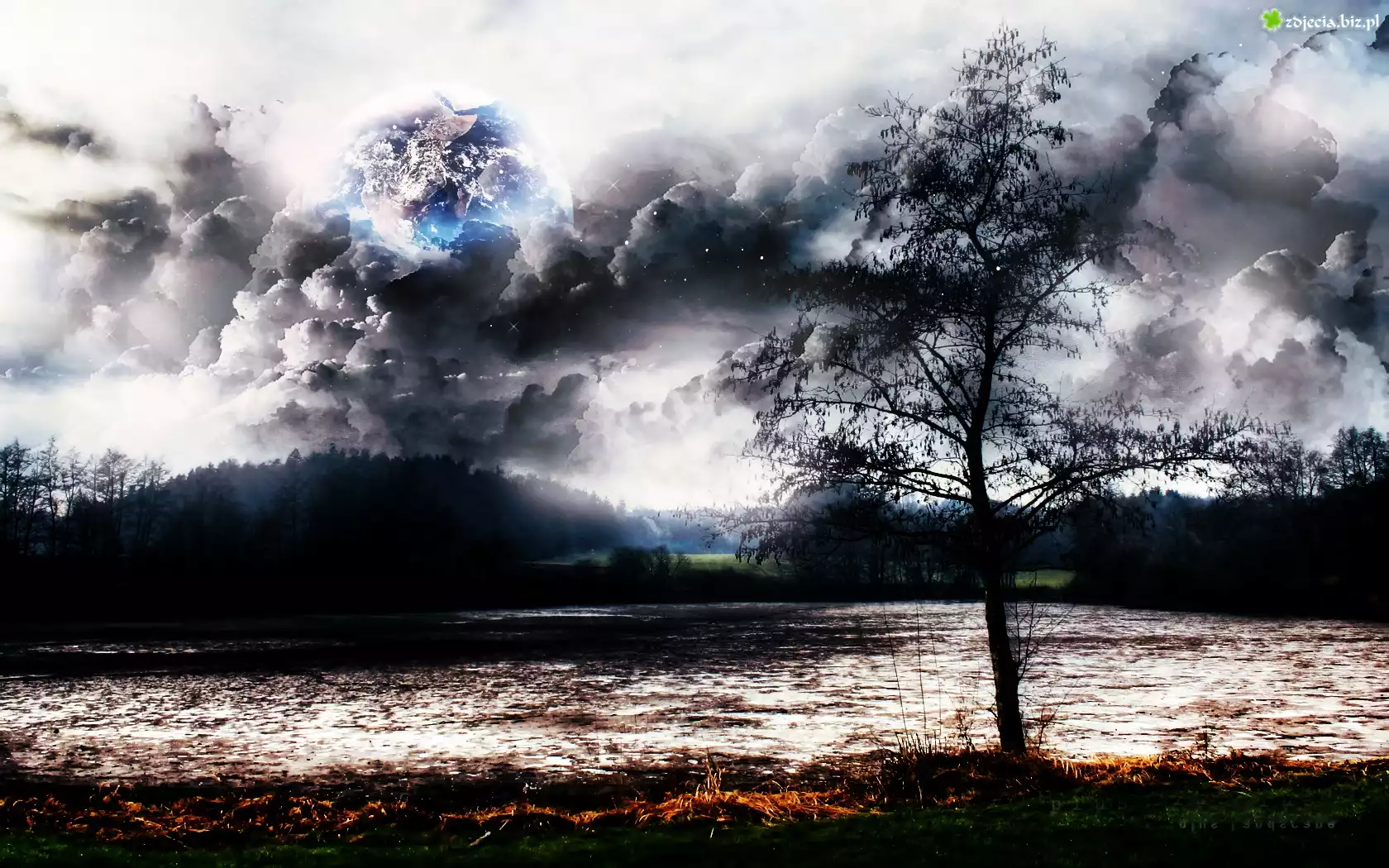 Zdjęcie Drzewo, Chmury, Jezioro