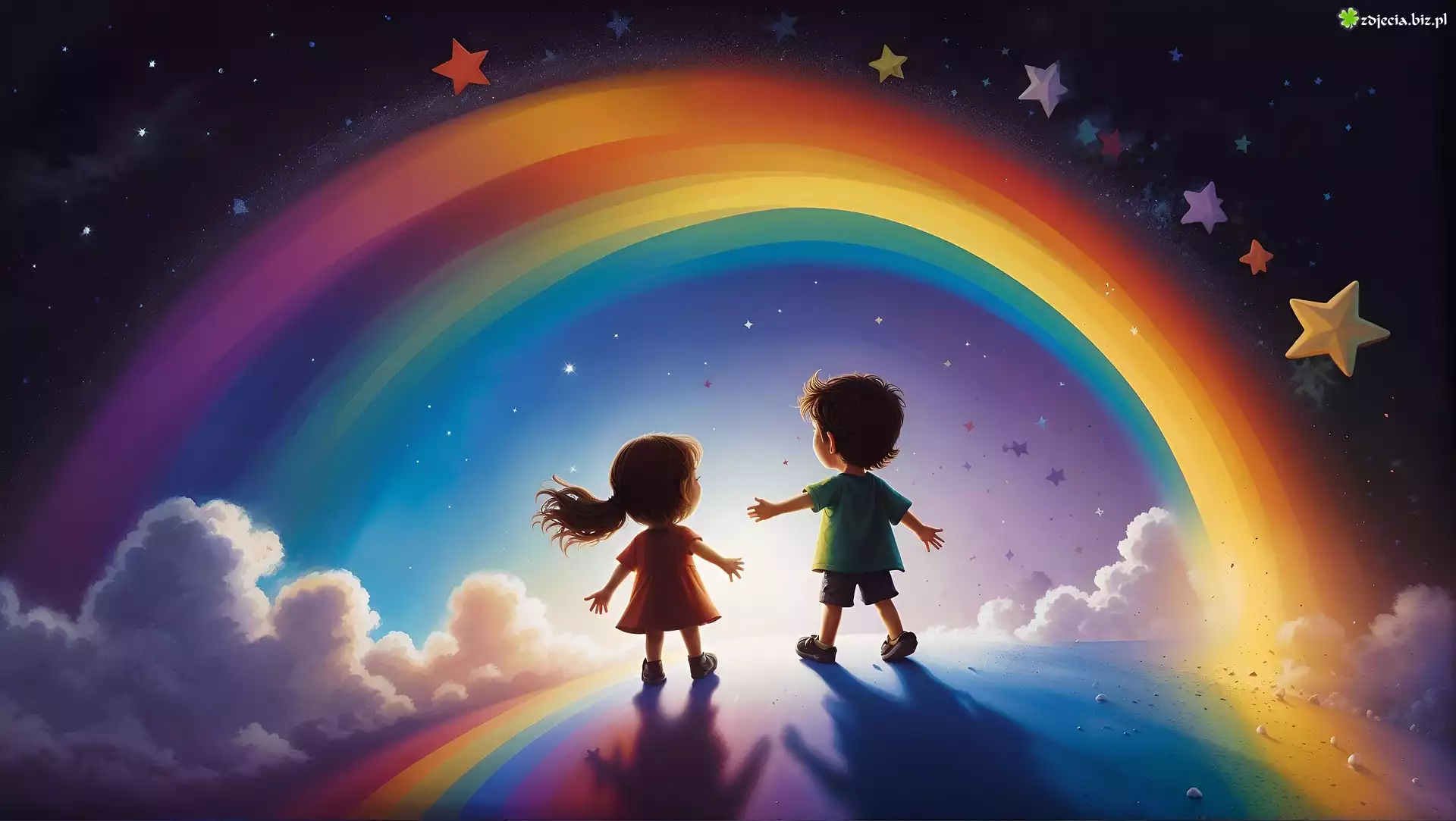 Zdjęcie Dzieci, Tęcza, Gwiazdy, Chmury