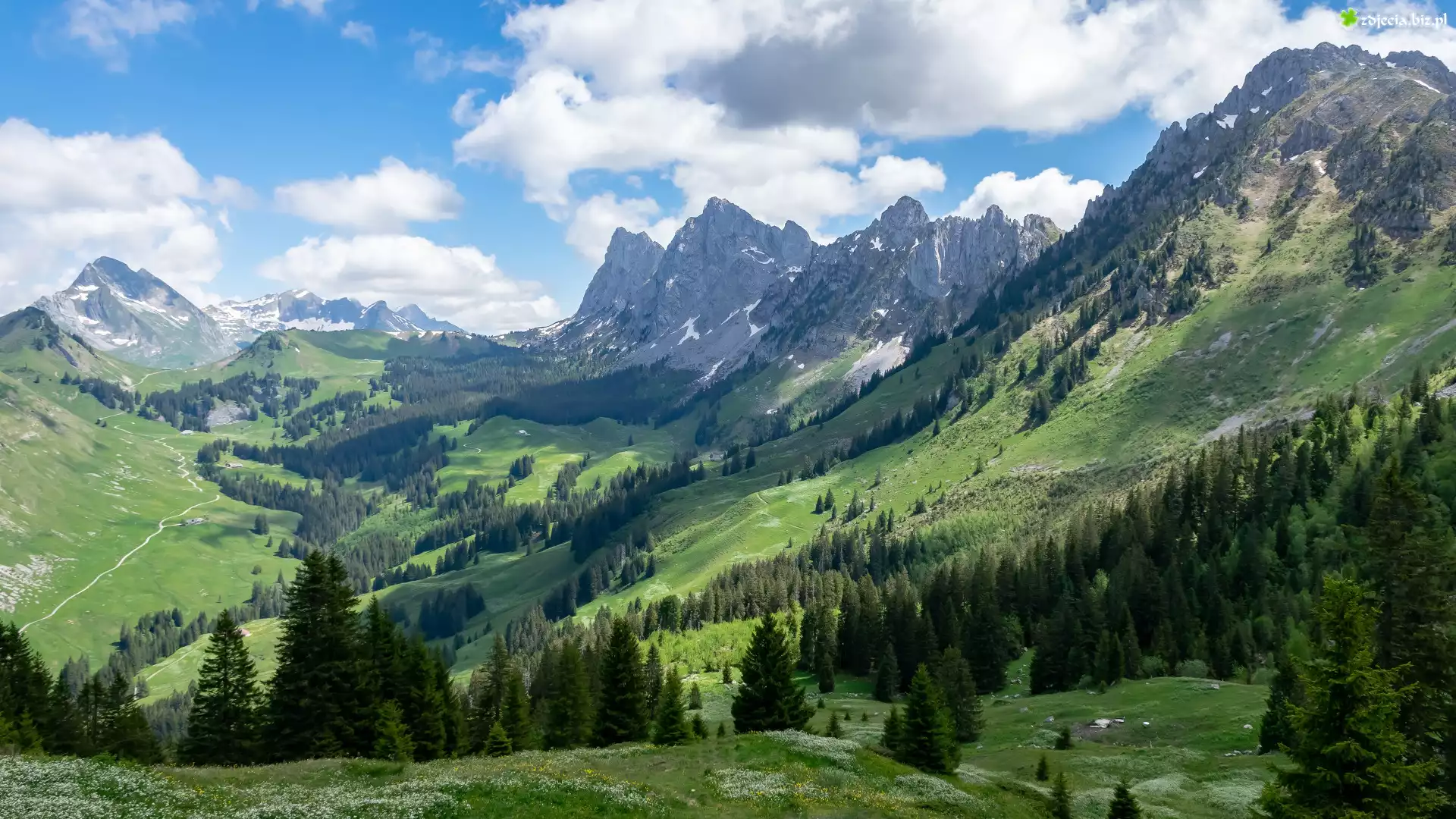 Zdjęcie Góry, Drzewa, Wzgórza, Chmury
