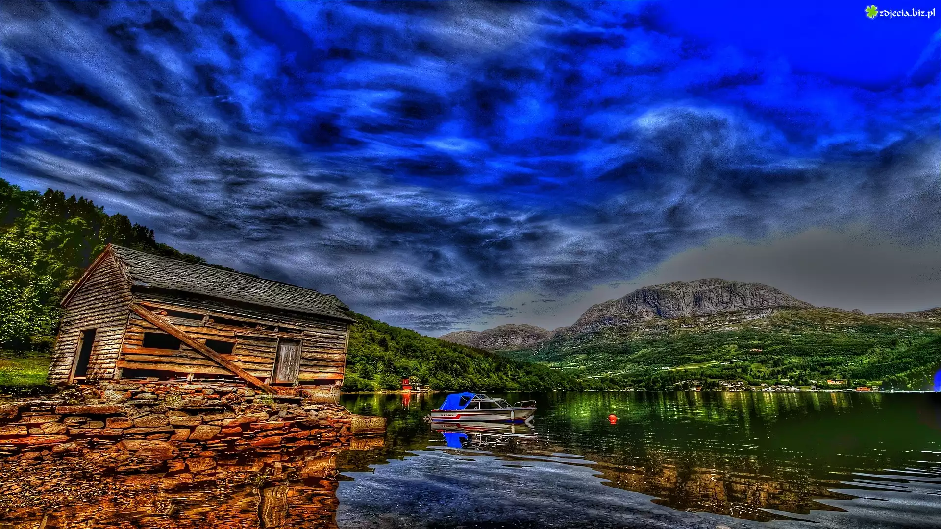 Zdjęcie Chmury, Góry, Jezioro, Budynek
