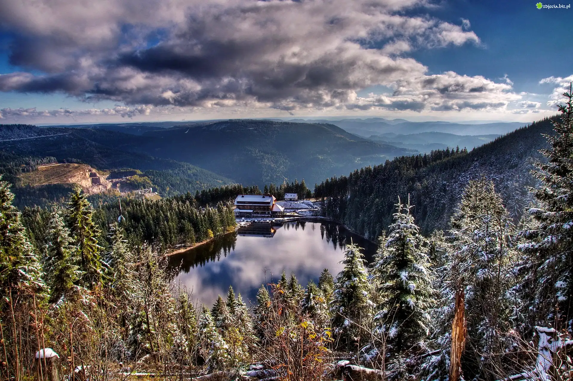 Zdjęcie, Chmury, Góry, Jezioro, Lasy