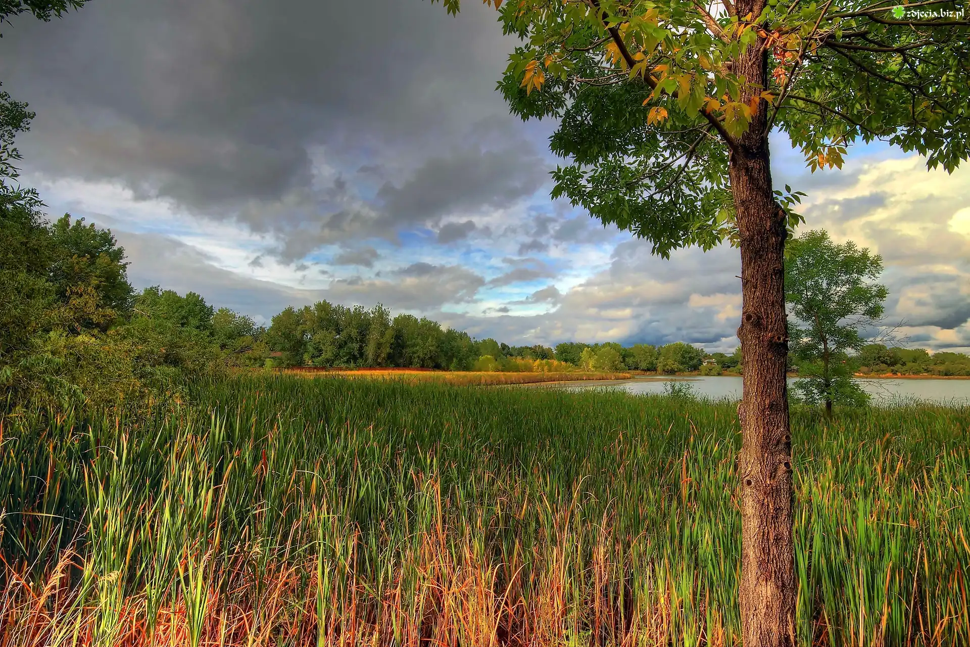 Zdjęcie Chmury, Jezioro, Las, Trzciny