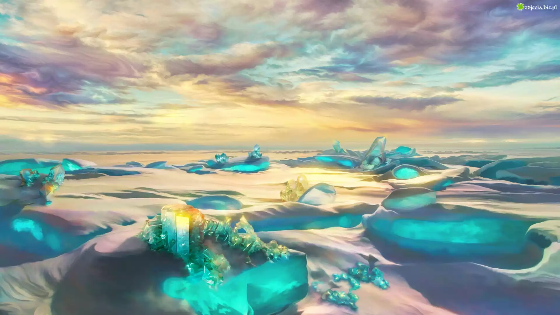 Zdjęcie Chmury, Planeta, Kryształy, Lód, Paintography, Fantasy