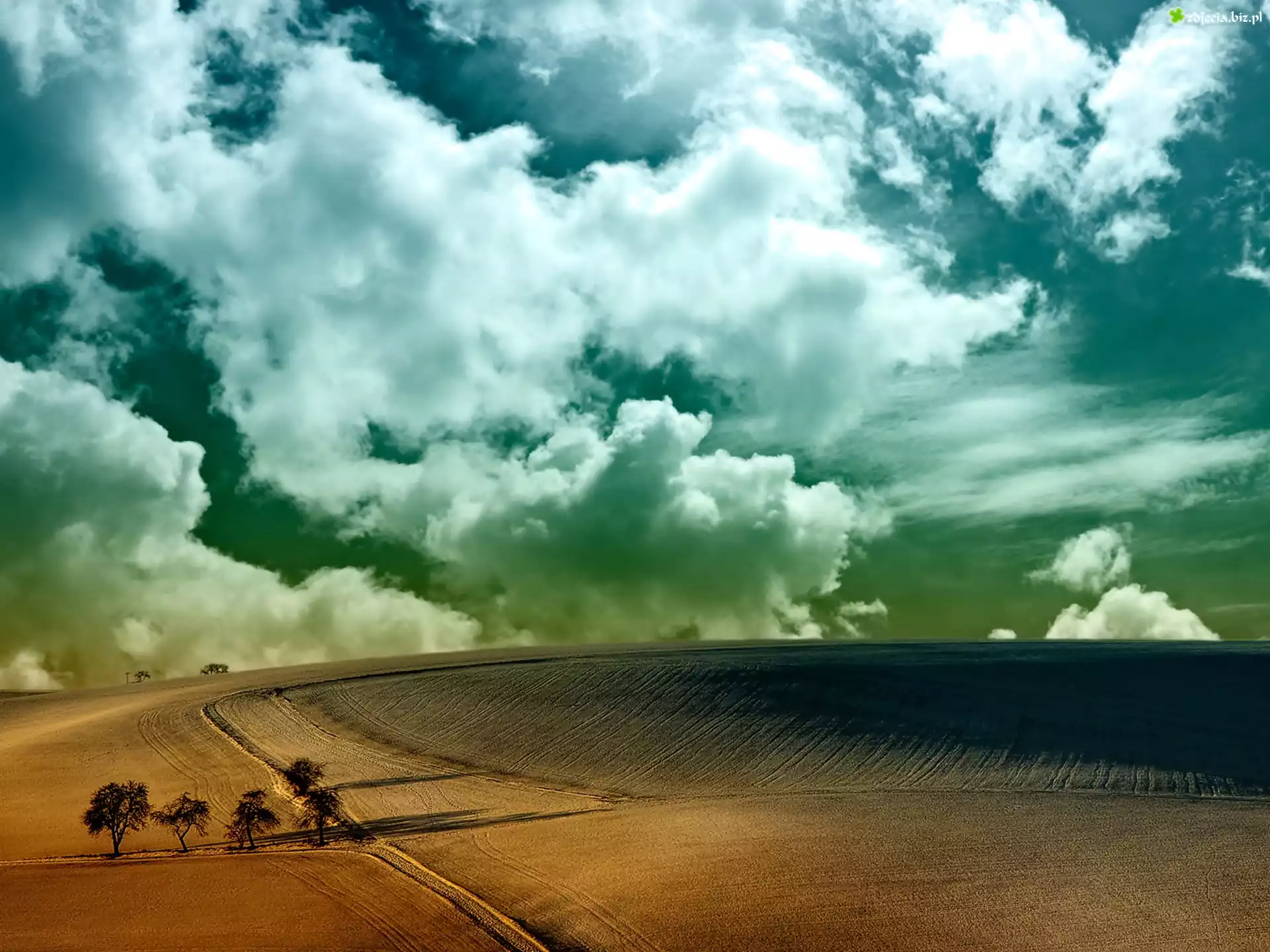 Zdjęcie Pole, Chmury, Horyzont
