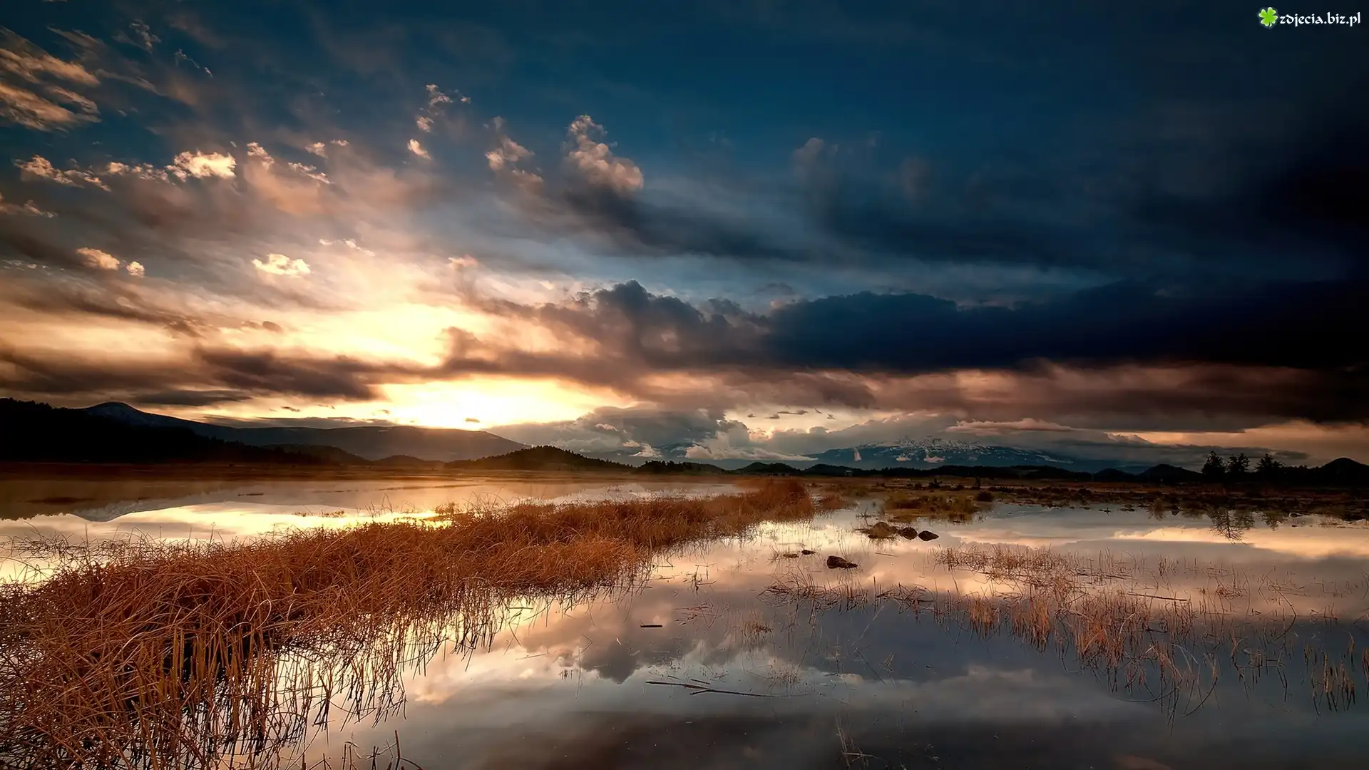 Zdjęcie Chmury, Góry, Zachód, Słońca, Woda