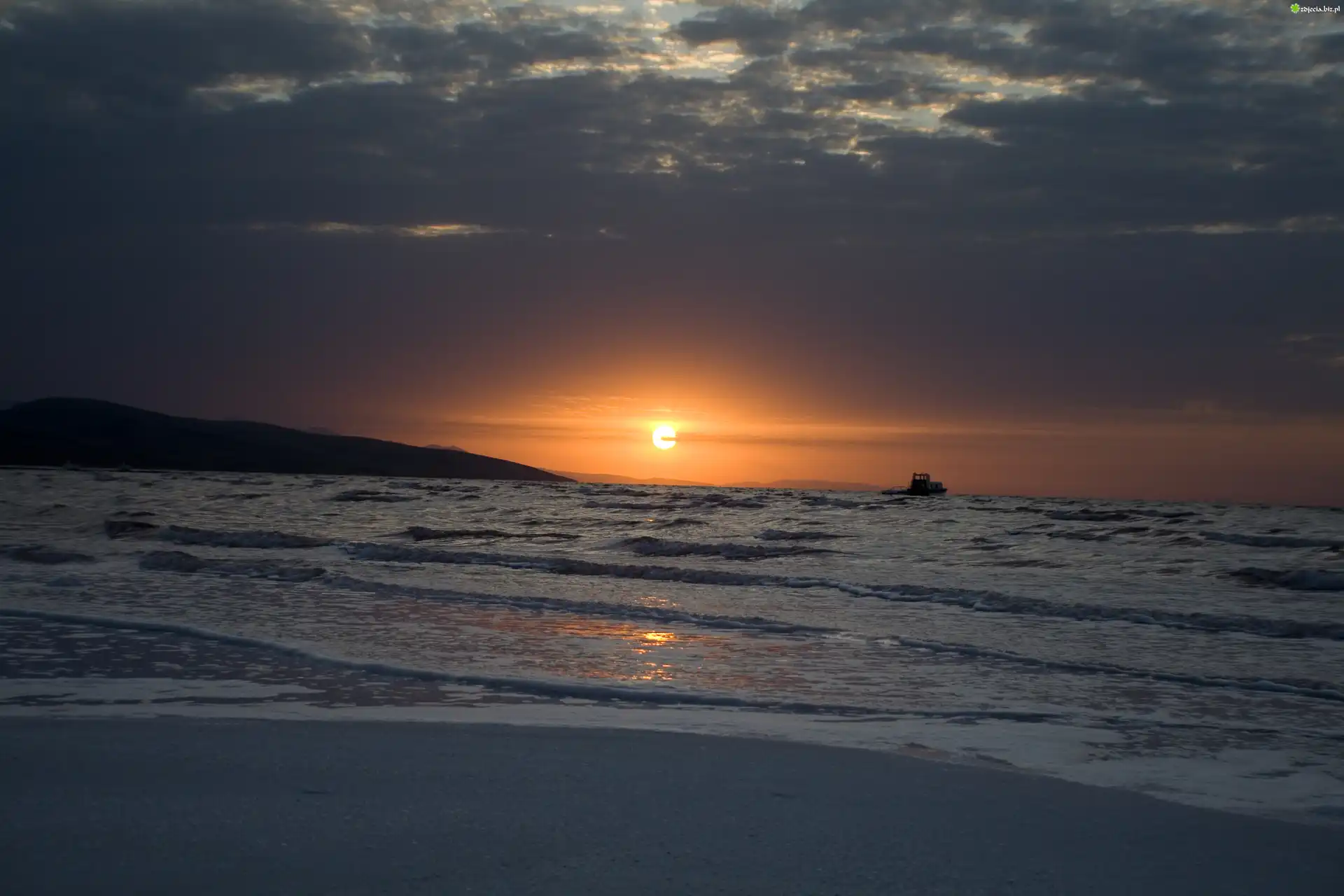 Zdjęcie, Chmury, Zachód, Słońca, Morze