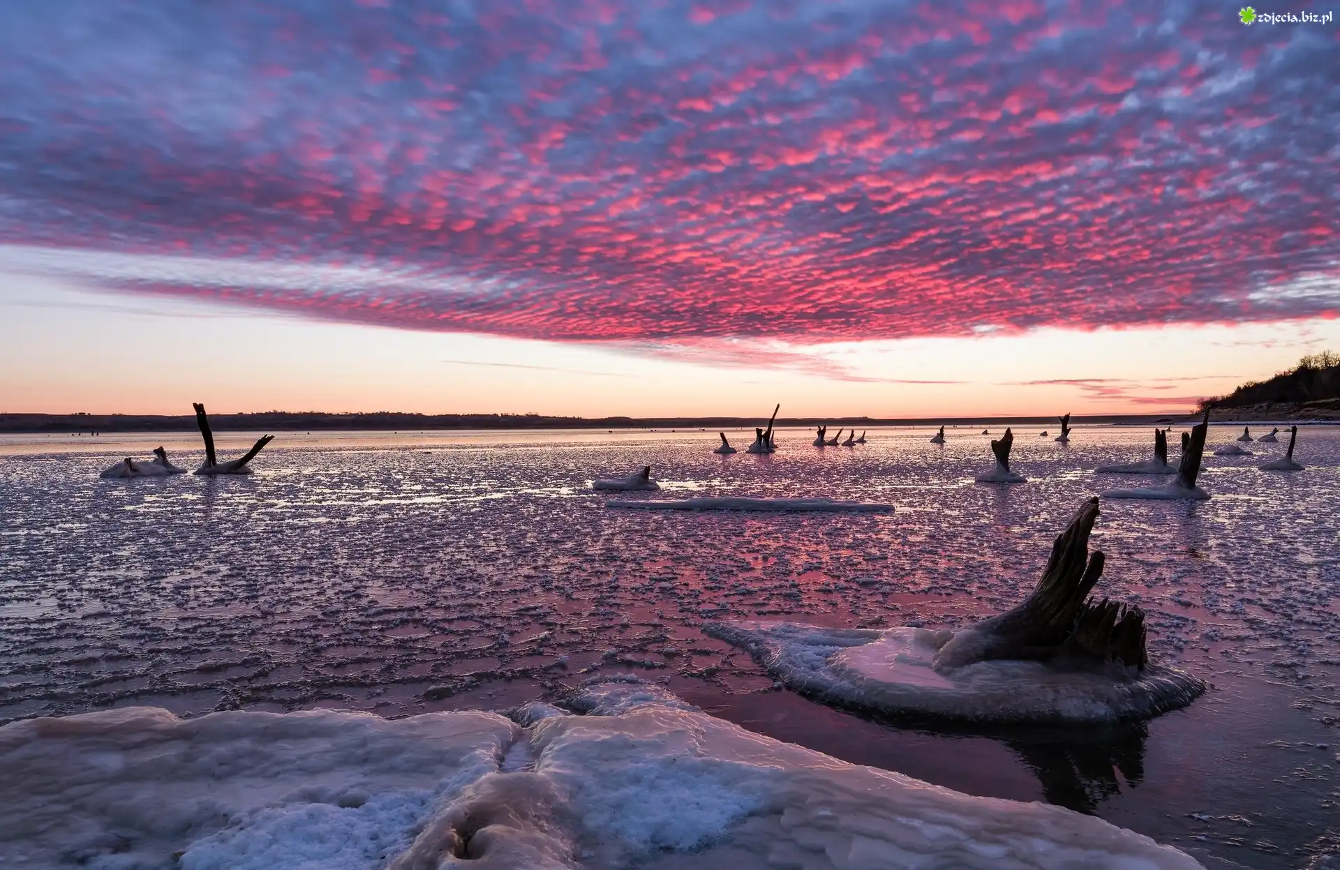 Zdjęcie Stany Zjednoczone, Stan Kansas, Tuttle Creek Lake, Jezioro, Lód, Chmury