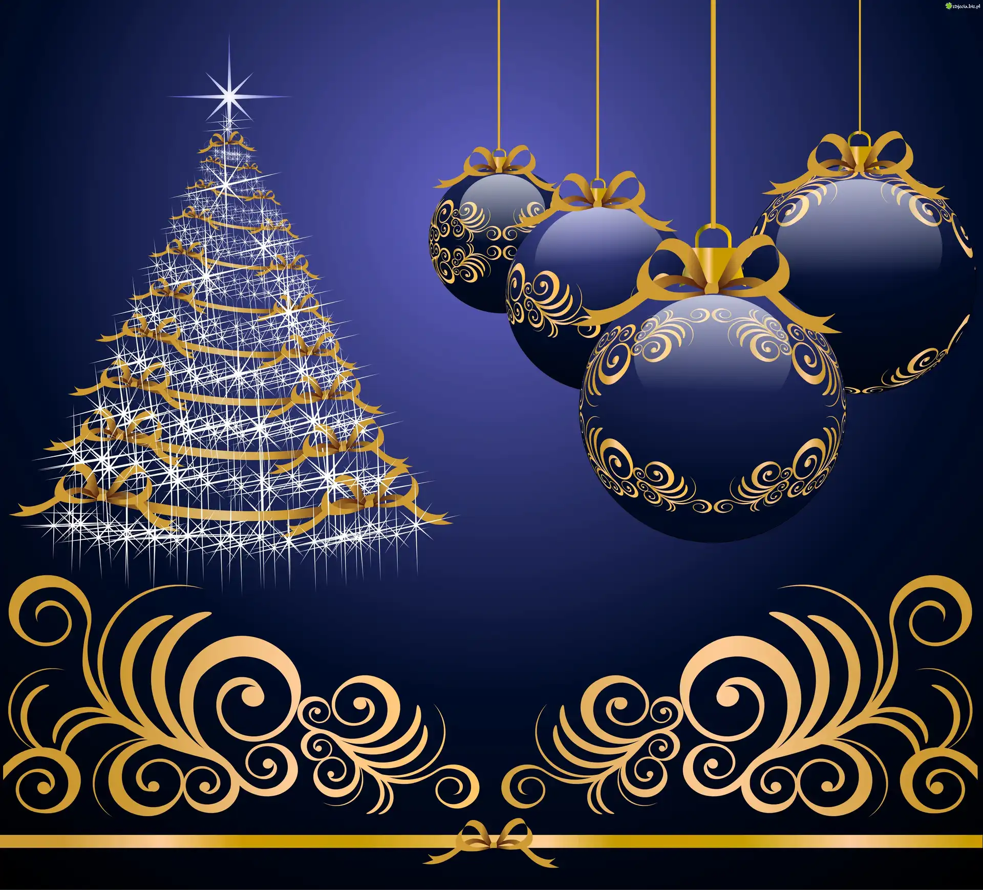 Zdjęcie Choinka, Bombki, Gwiazda, Czubek