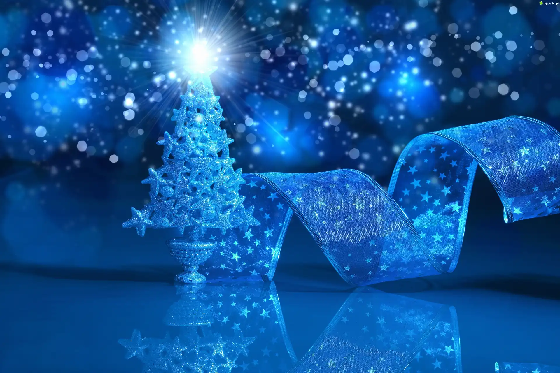 Zdjęcie Choinka, Światło, Wstążka, Święta