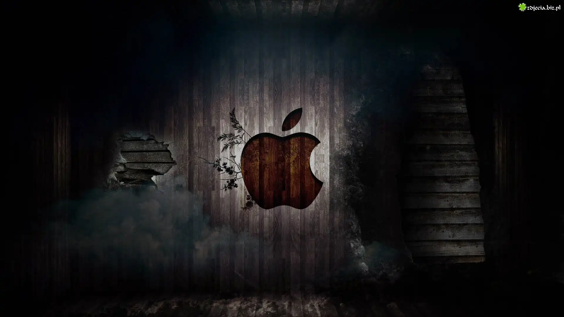 Zdjęcie Ściana, Z, Desek, Ciemności, Logo, Apple