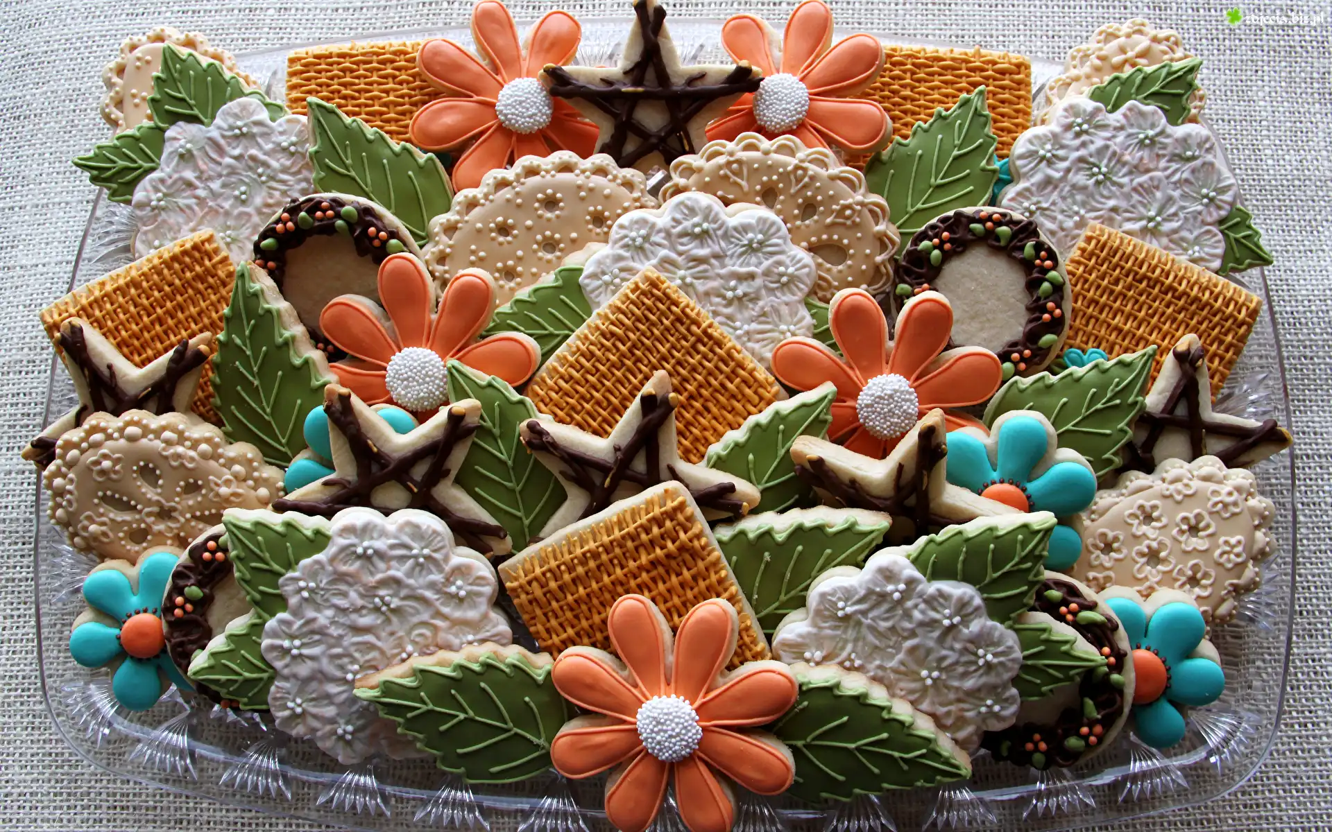 Zdjęcie, Ciasteczka, Kolorowe, Posypka, Taca, Serweta